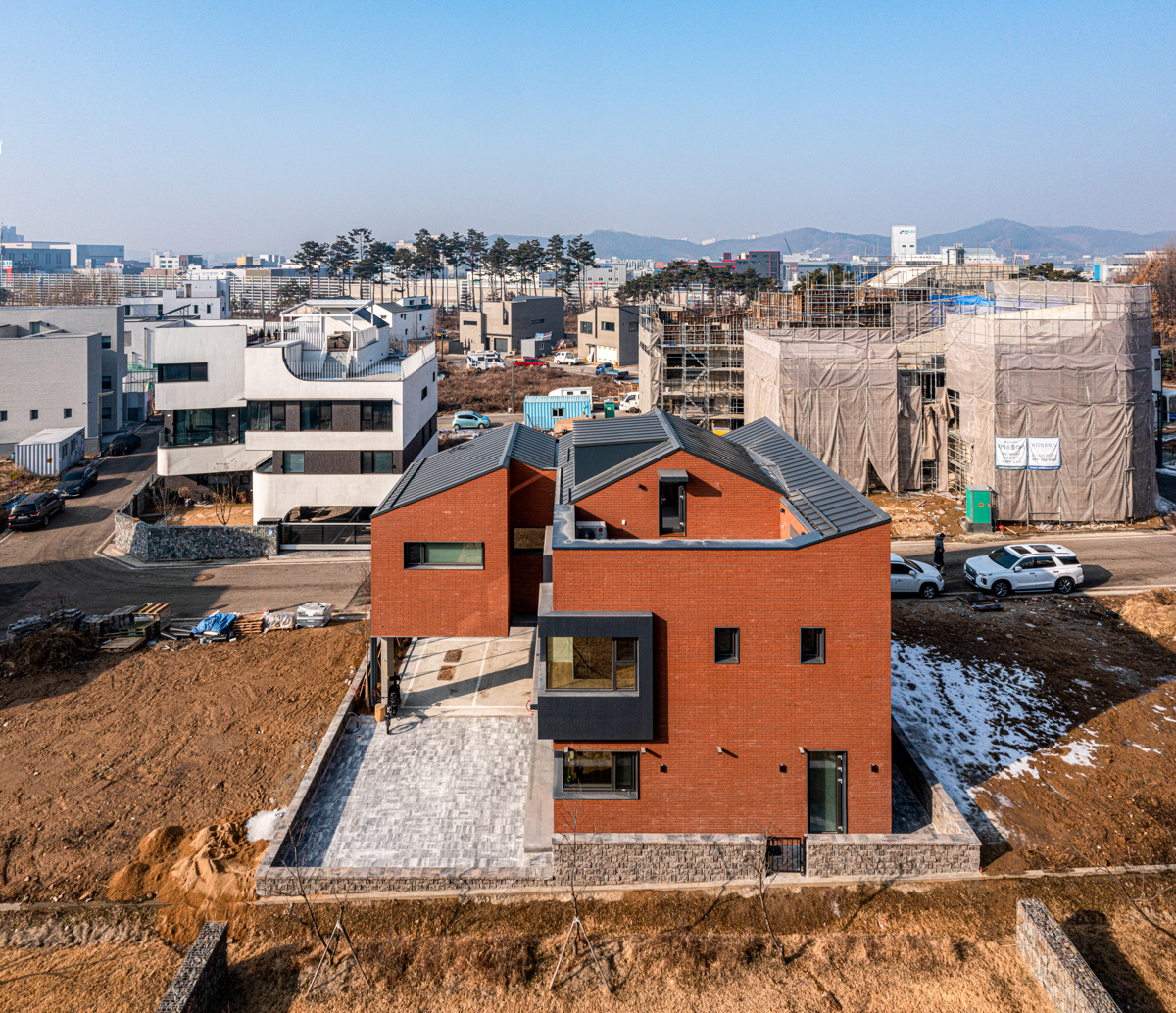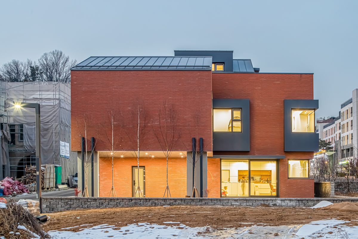 코로나가 시작되고 1년 정도 지났을 즈음, 단독주택 수요가 증가하던 때에 우리를 찾아온 건축주는 어린 자녀들이 집에서 다양한 활동을 할 수 있는 넓은 공간의 주택을 원했다. 그와 동시에 남편이 재택근무를 할 수 있는 독립적인 작업실, 아내의 취미 공간, 부부와 두 자녀의 방이 필요했다. 이 외에도 단열, 채광, 환기, 결로 방지 등 기능적 본질에 충실한 단독주택이 되기를 바랐다.