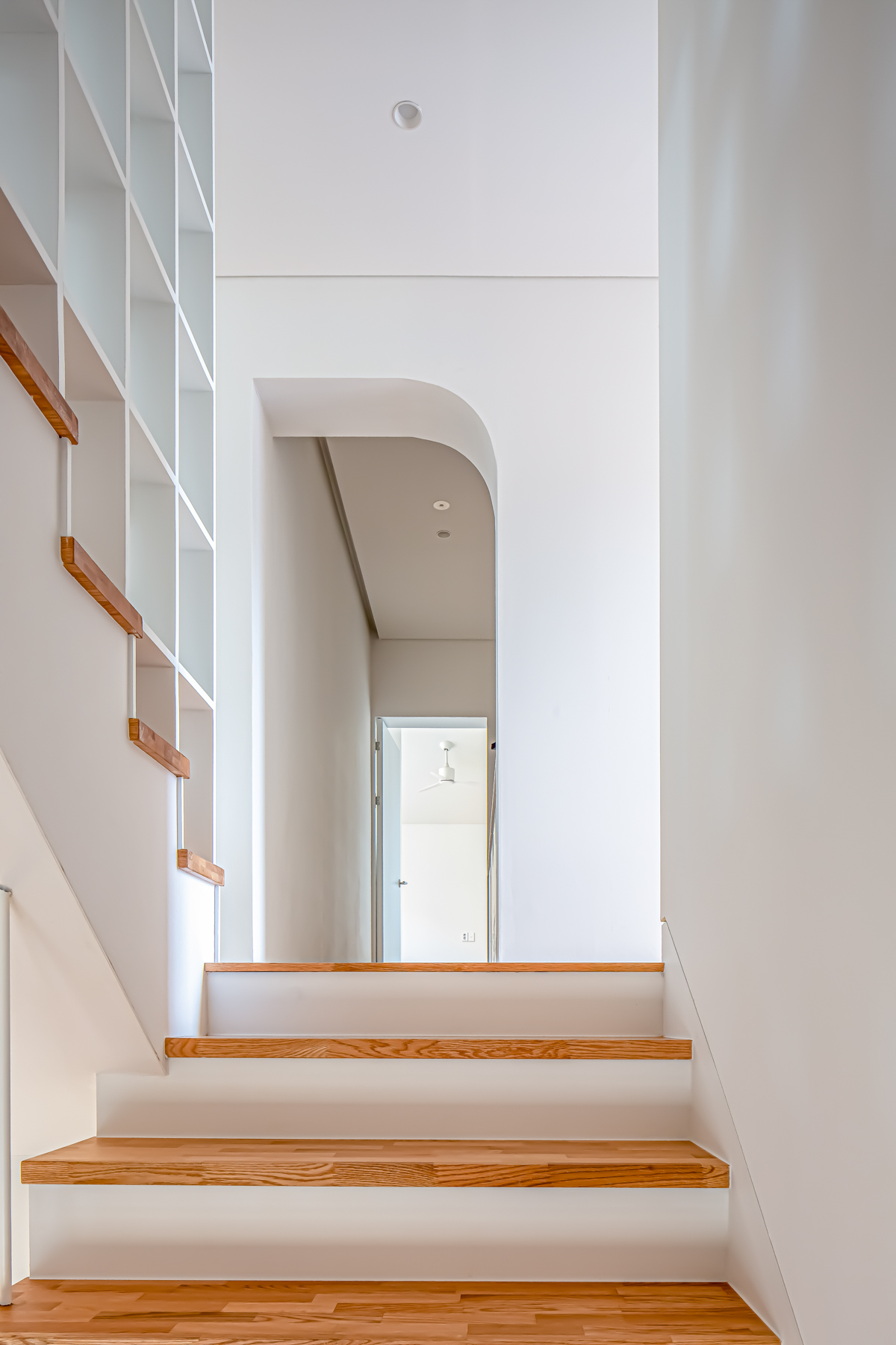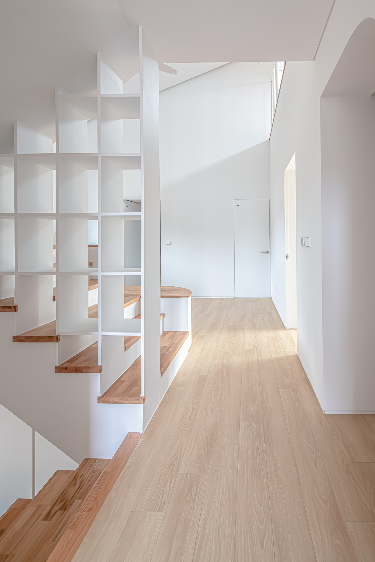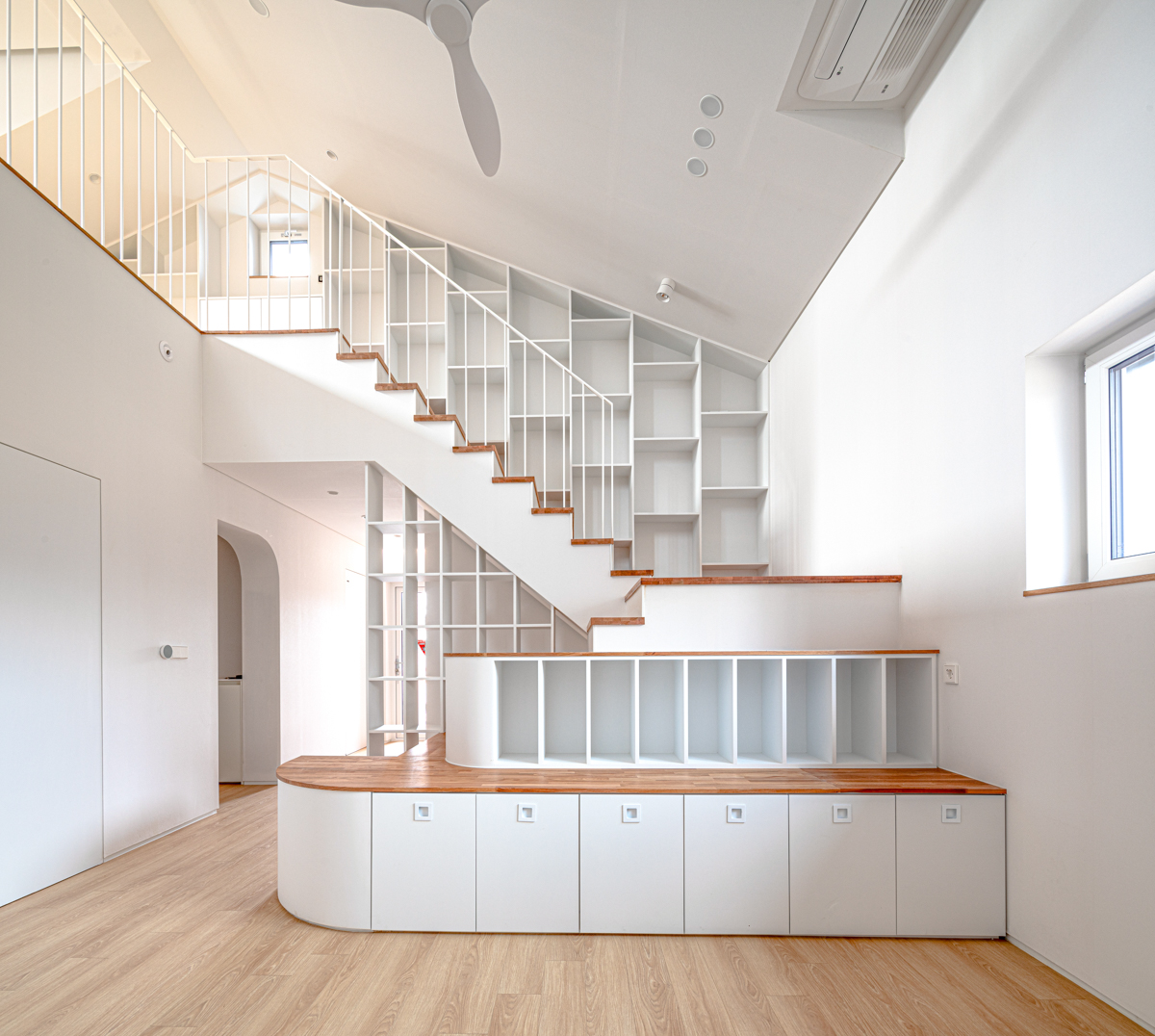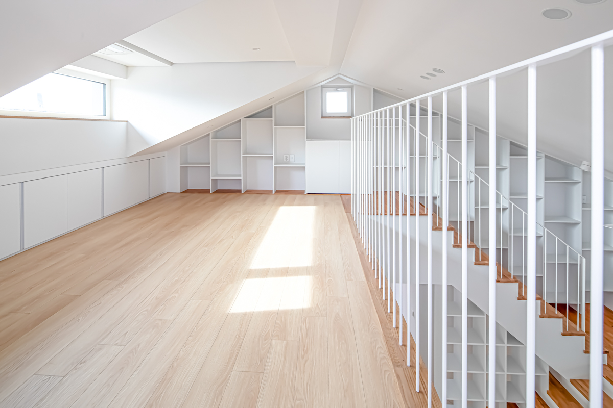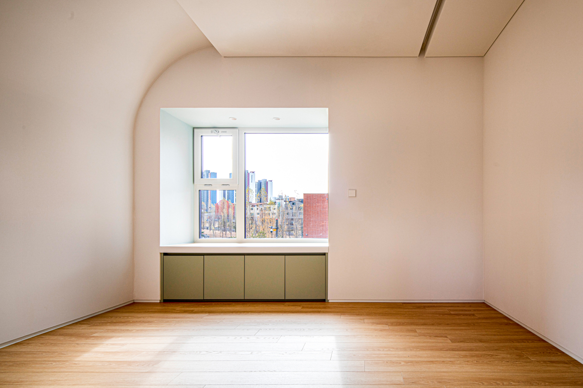 부부 공간은 아내의 취미 방 및 남편의 재택근무를 위한 작업실, 안방으로 이루어진다. 자녀 공간에서는 가족실에서 스탠드계단을 거쳐 다락에 닿는 동선을 연속적인 복층 공간과 연계해 주었다. 각각의 자녀 방에는 호수 산책로변의 조망과 채광을 고려한 남향의 윈도우시트를 계획하였다.