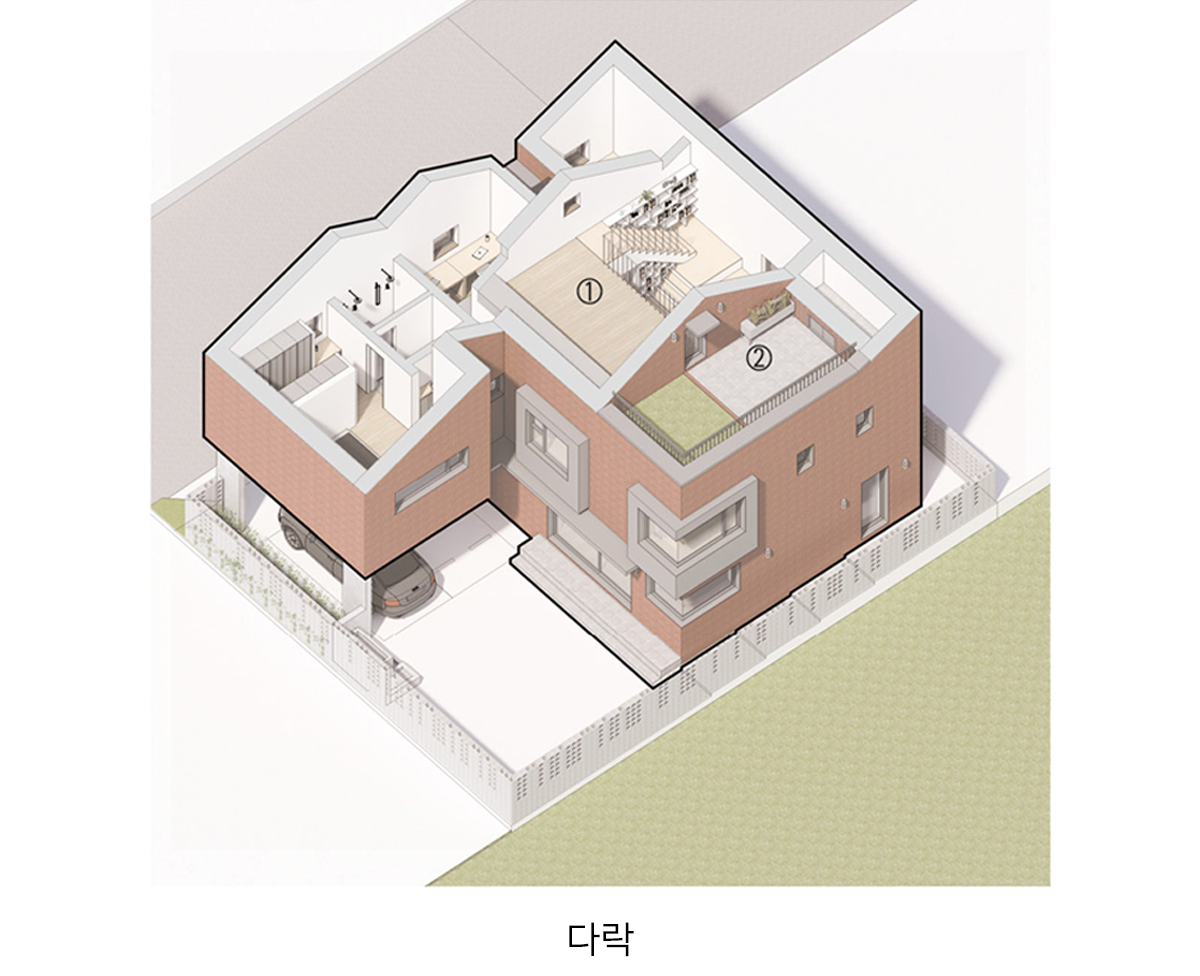 건축가와 건축주가 1년의 시간 동안 함께 고민하고 설계한 단독주택 ‘다락多樂’. 이곳에서 어린 자녀들과 함께 앞으로 많은 추억을 만들고, 앞으로 즐길 거리가 많은 공간이 되길 바라는 마음이 담겨 있다.