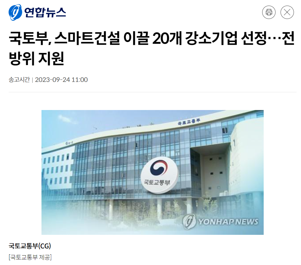 국토교통부에서 스마트 건설 생태계 육성을 위해 스마트 건설 강소기업 20곳을 선정하였습니다.
