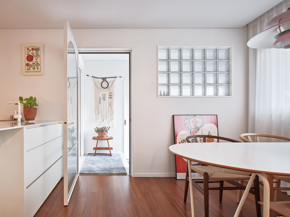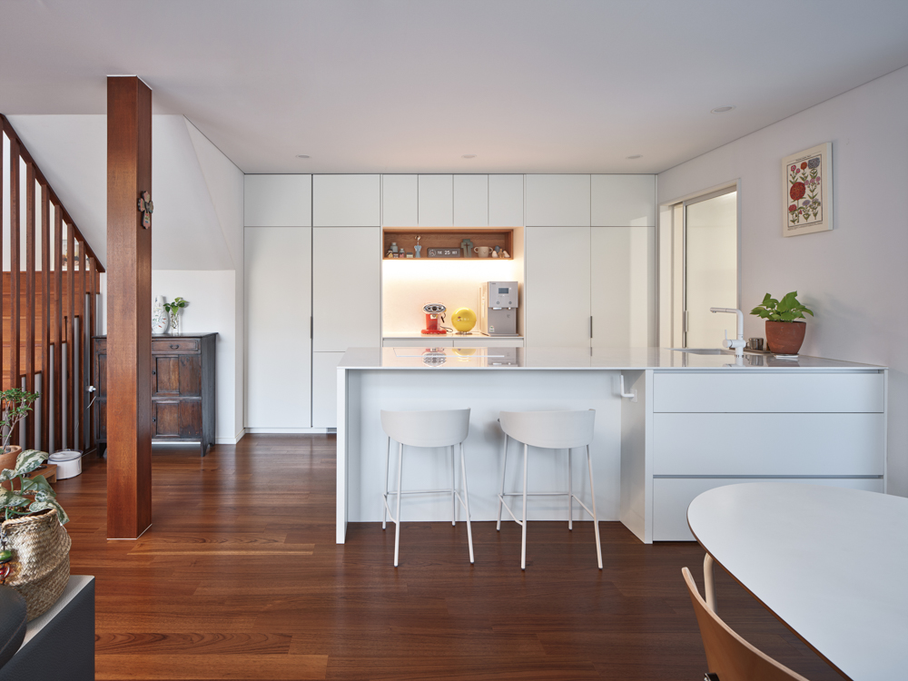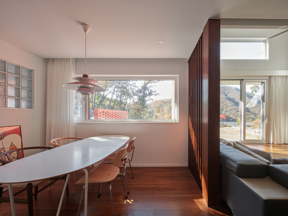 기능 공간은 특히 주 사용자, 그리고 도시와 다른 생활양식을 헤아려 디자인했다. 일례로 많은 짐을 옮기는 과정에서 불필요한 동선이 생기지 않게 효율적으로 배치한 현관과 다용도실은 주방 또는 후정으로 이어져 원활한 순환구조를 완성한다. 아내가 가장 많은 시간을 보내는 부엌 및 식당은 계절감이 느껴지는 앞마당을 내다볼 수 있는 긴 창을 설치했다.