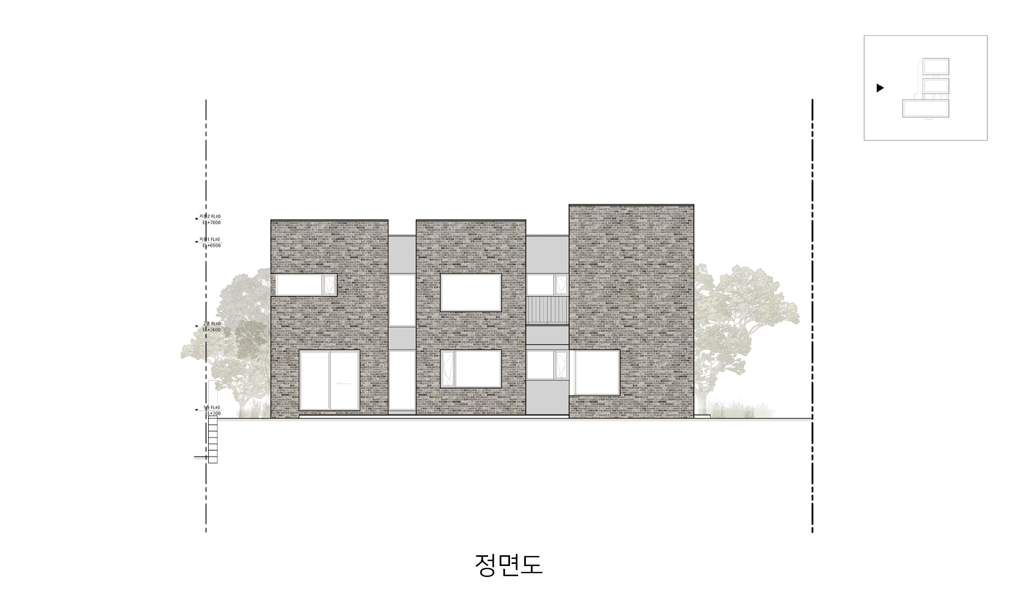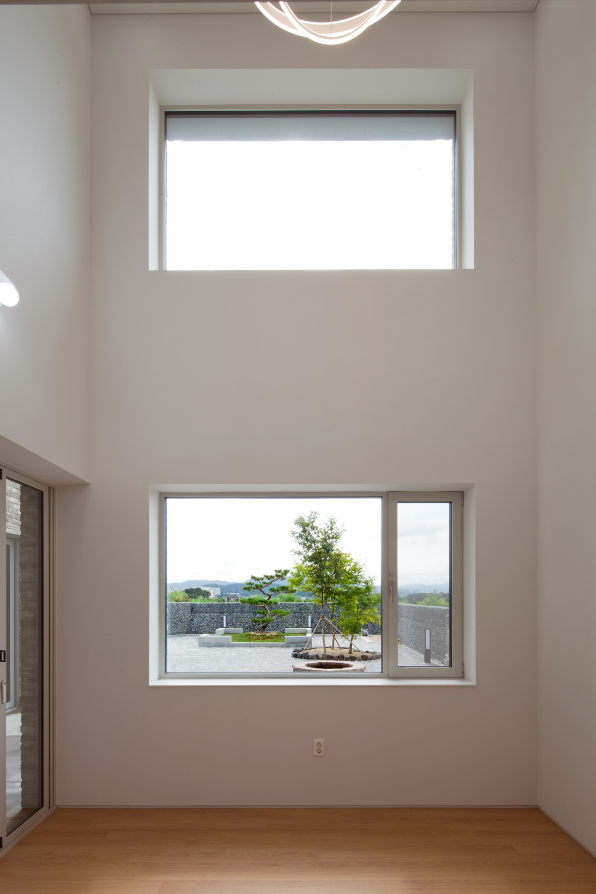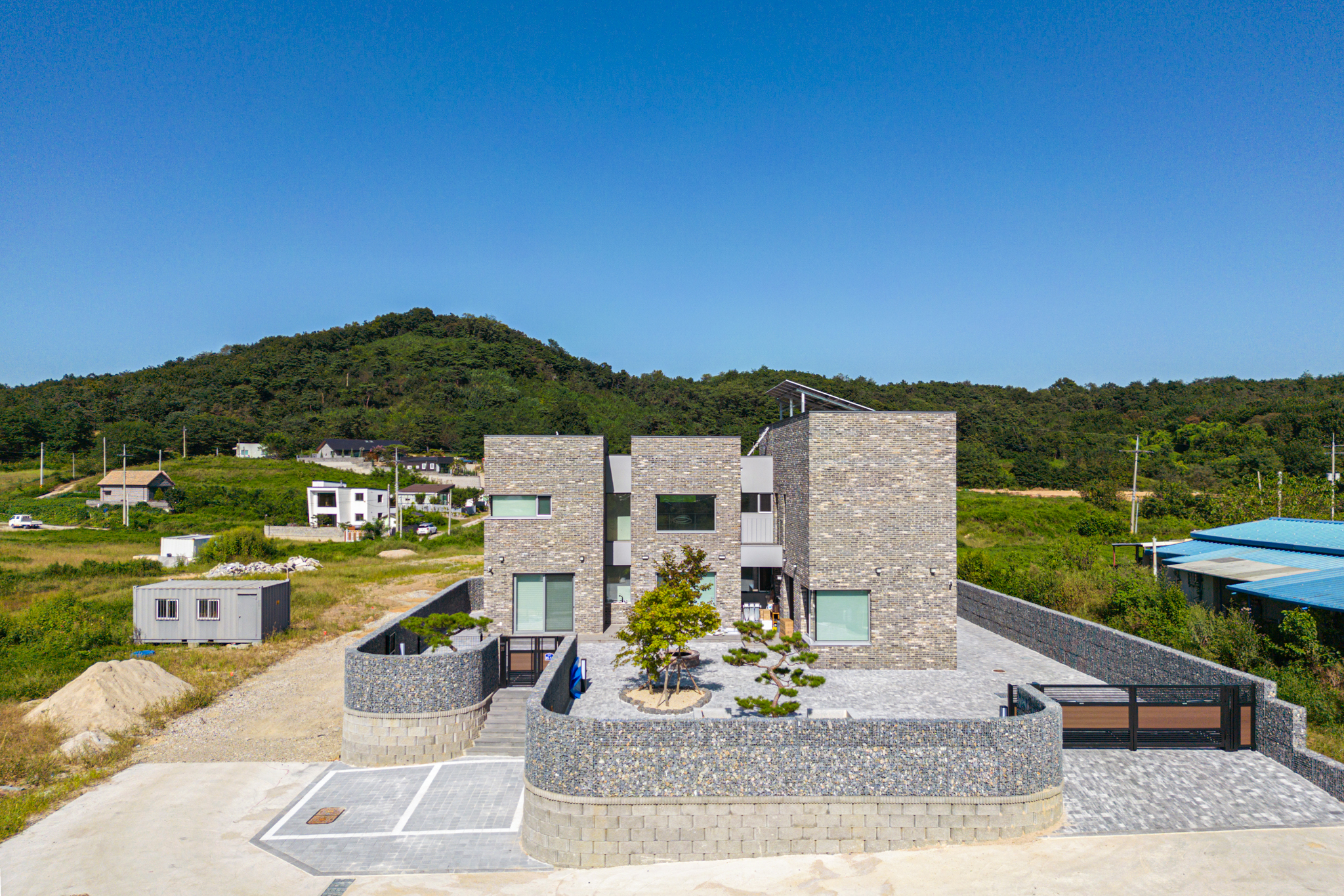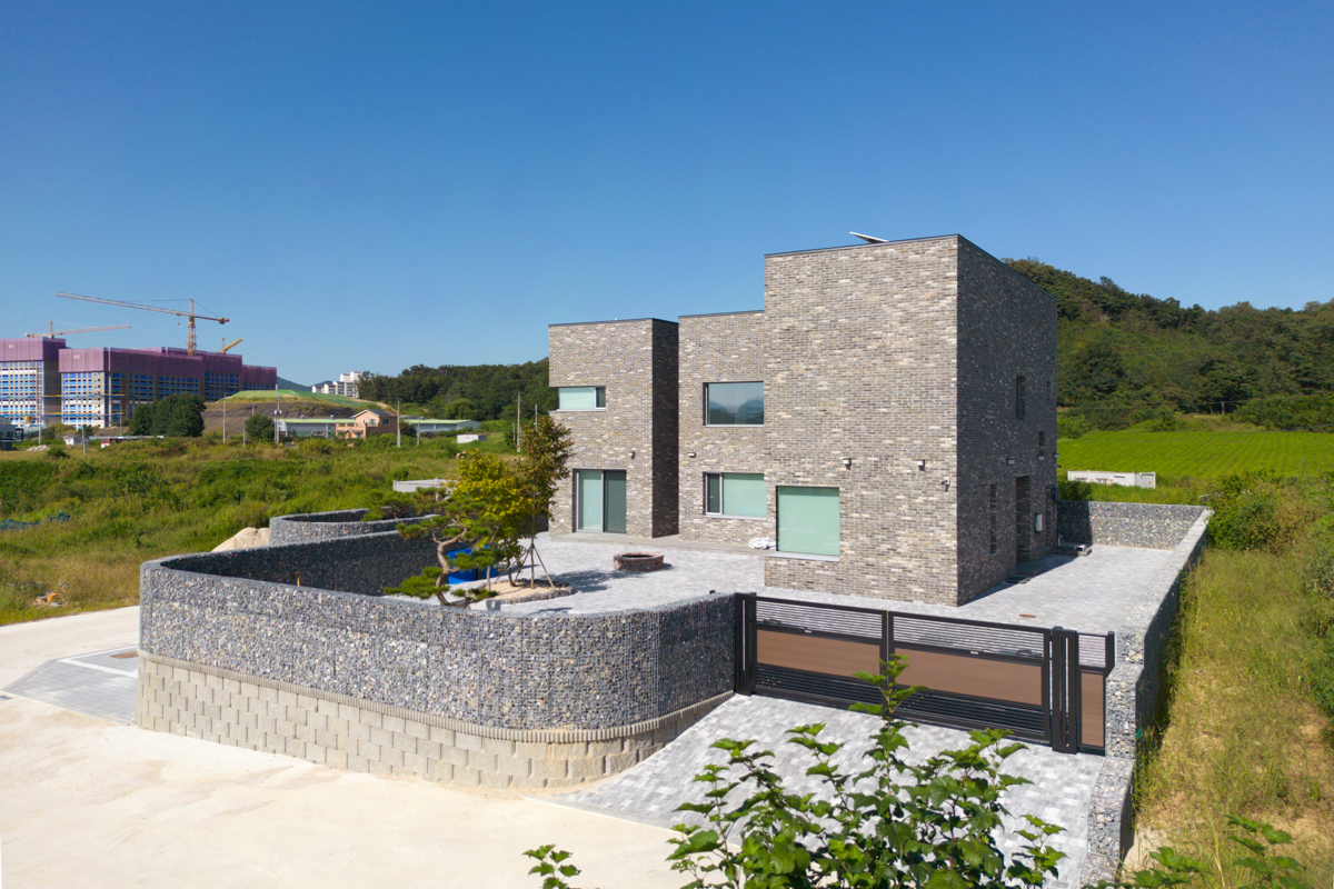 먼저 마당의 면적을 최대한 확보할 수 있도록 집은 후면에 배치했다. 그러나 전 방향으로 좋은 전망을 누릴 수 있는 대지 조건은, 프라이버시 보호에 취약하다는 약점을 동반했다. 이를 보완하기 위해 담장과 대문을 사용하고, Q블록 형태의 담장을 활용하여 프라이빗하지만 일정 부분 개방감을 잃지 않도록 설계했다.