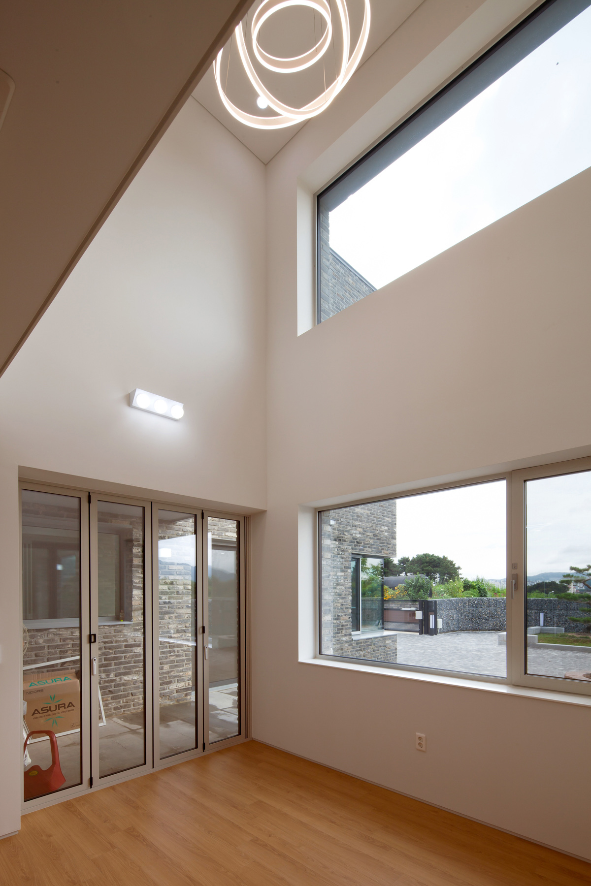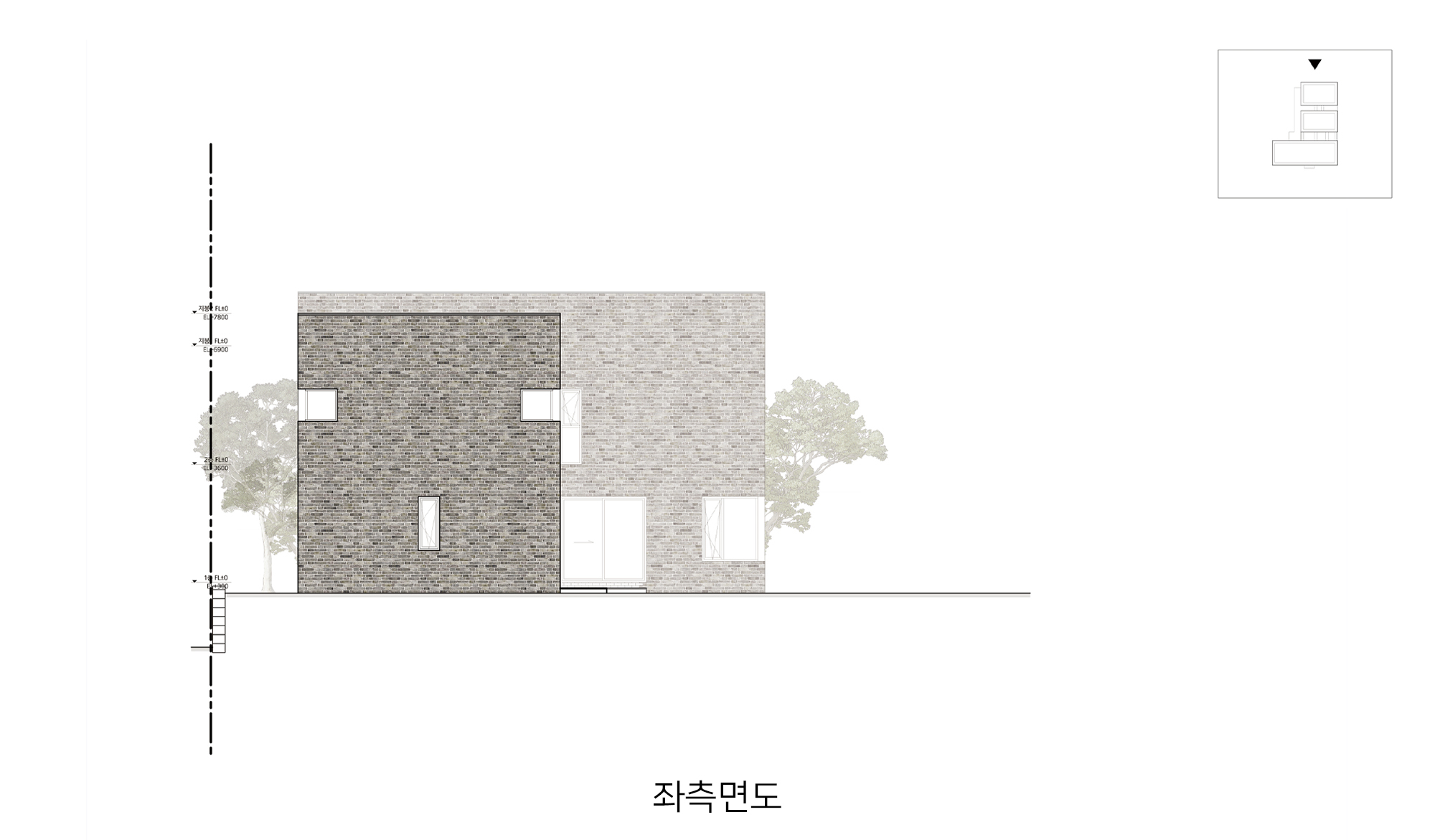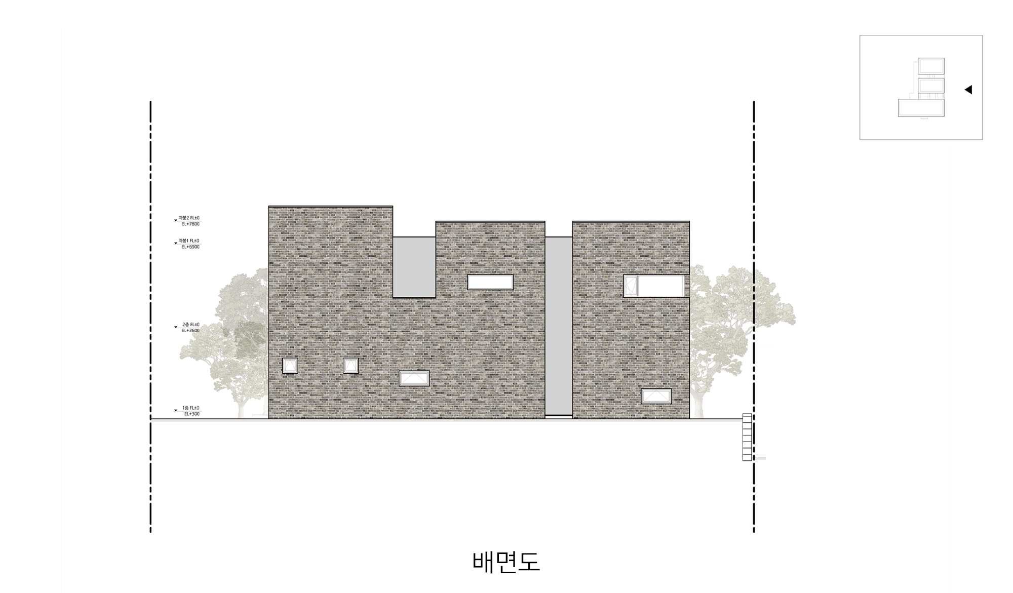 먼저 마당의 면적을 최대한 확보할 수 있도록 집은 후면에 배치했다. 그러나 전 방향으로 좋은 전망을 누릴 수 있는 대지 조건은, 프라이버시 보호에 취약하다는 약점을 동반했다. 이를 보완하기 위해 담장과 대문을 사용하고, Q블록 형태의 담장을 활용하여 프라이빗하지만 일정 부분 개방감을 잃지 않도록 설계했다.