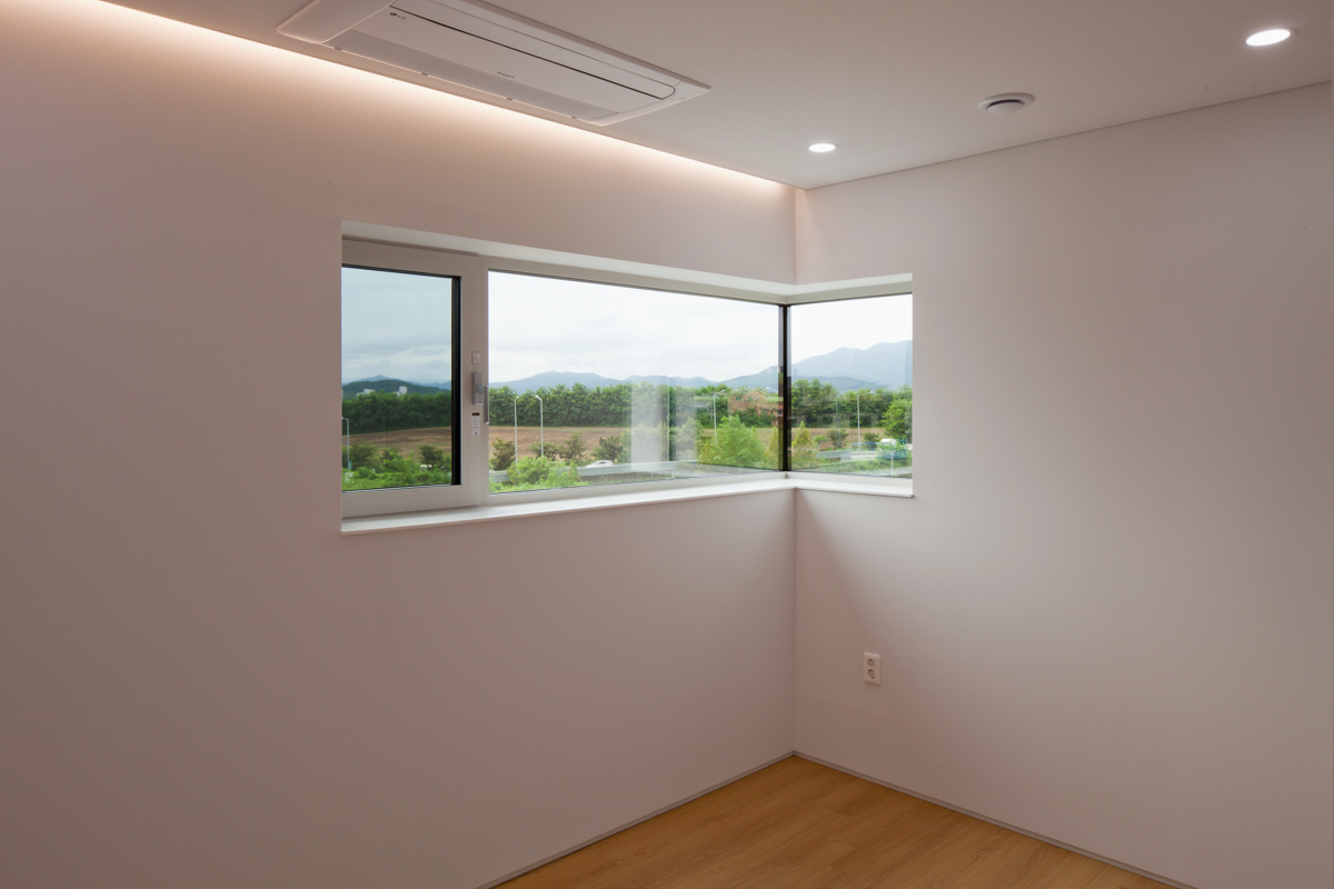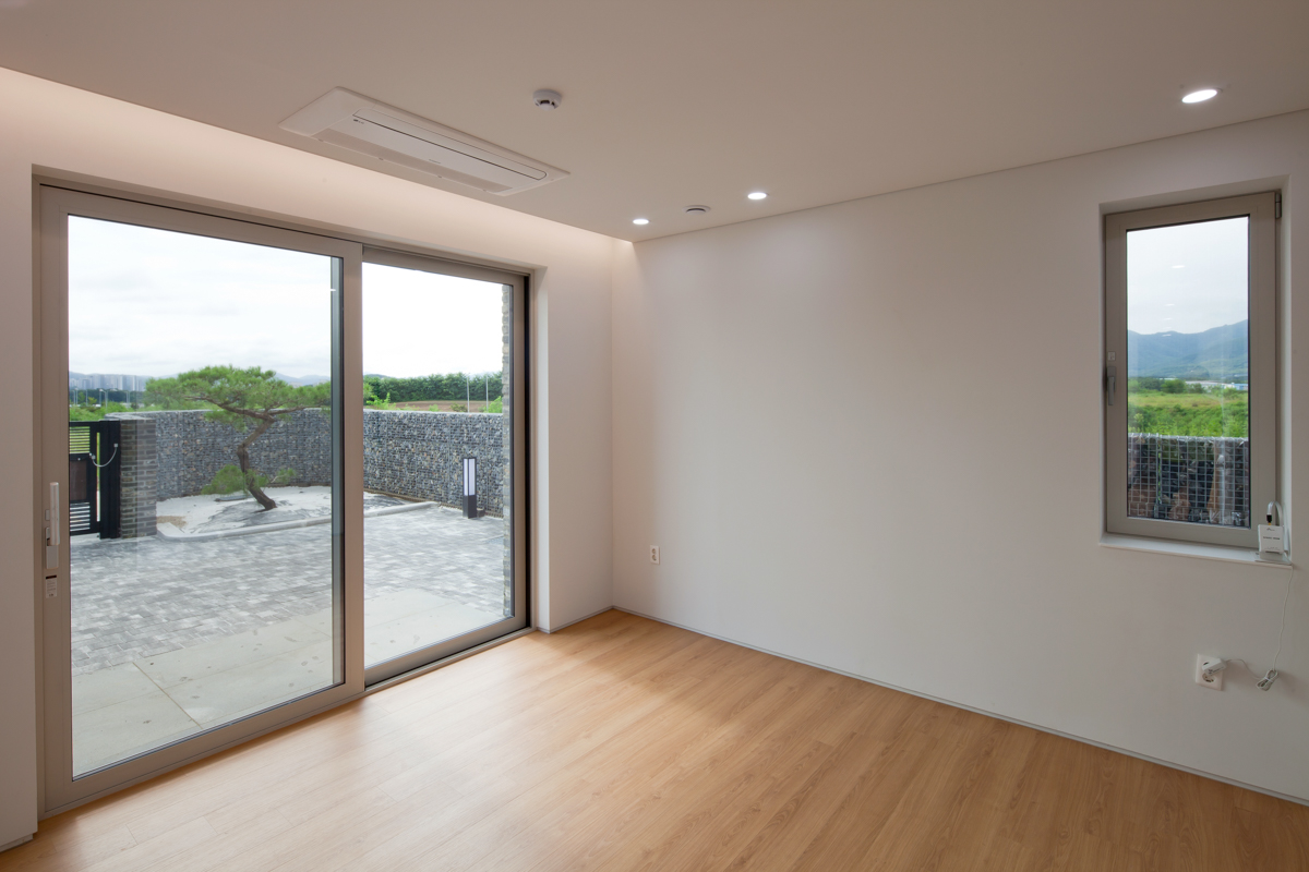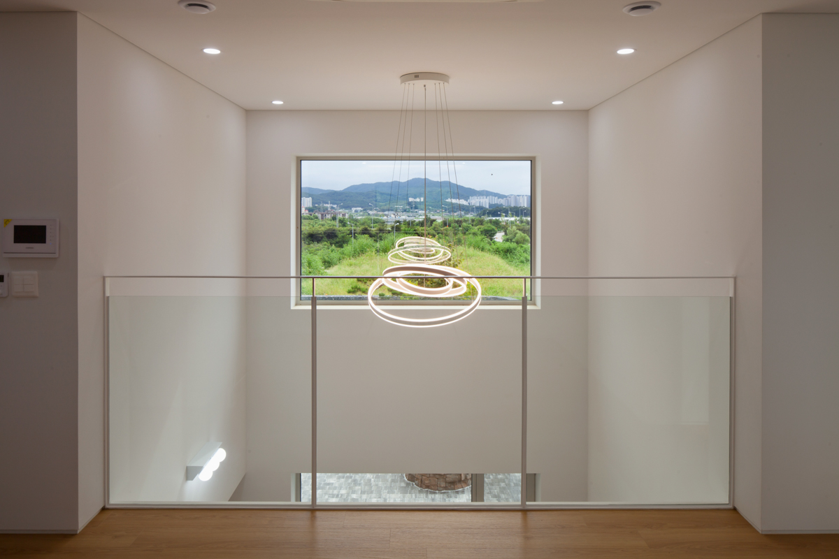 복도를 따라 가장 깊은 곳에 배치된 마지막 매스는 가장 프라이빗하고 정적인 영역으로 1층에 안방, 2층에 2개의 방을 추가로 계획하여 손님들이 편하게 머물다 갈 수 있는 편안한 공간이다.