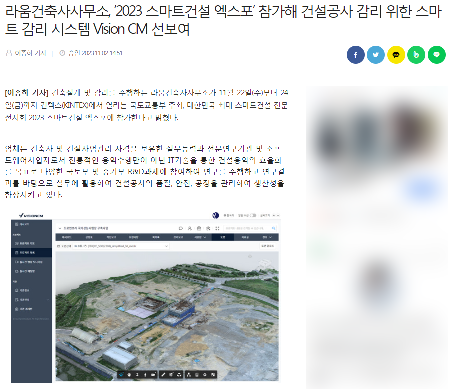 이 자리를 통해 저희 라움건축의 스마트감리 시스템인 VisionCM을 소개할 수 있었습니다.
