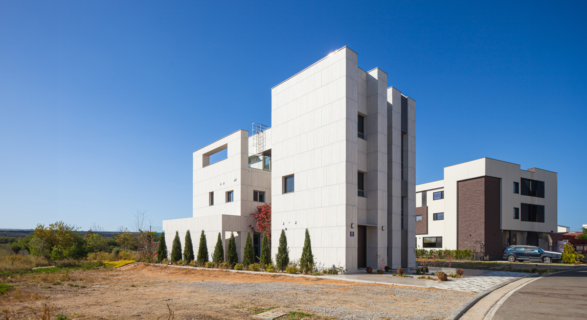 새로운 기술 도입을 통해 주택의 문제점을 극복하기를 바랐던 건축주는 가족들에게 완벽한 주택을 선물하고자 했다. 자녀들이 성장하면서 공간의 활용이 달라질 것을 고려한 가변적 공간과 더불어 단열과 결로, 그리고 방수, 소음에 강한 주택을 요청했다. 골프장 내 주택 필지인 대지 동측은 폭 7m의 진출입 도로가, 서측은 골프장 부지가 자리한다. 골프장과 접한 면이 비교적 좁고 긴 형태인 대지는 남북 방향으로 인접한 대지와의 프라이버시를 고려하면서 일조 및 채광까지 확보하기 위한 고민이 필요했다.