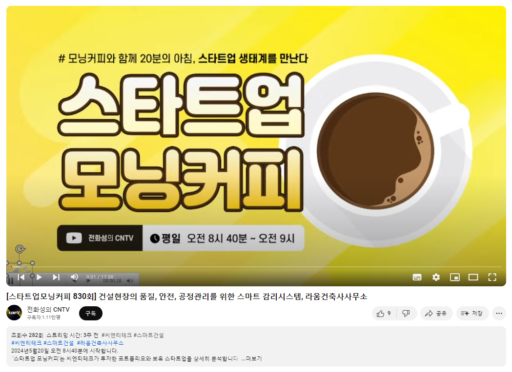 유투브 채널 '전화성의 CNTV'의 메인 프로그램인 [스타트업 모닝커피]에