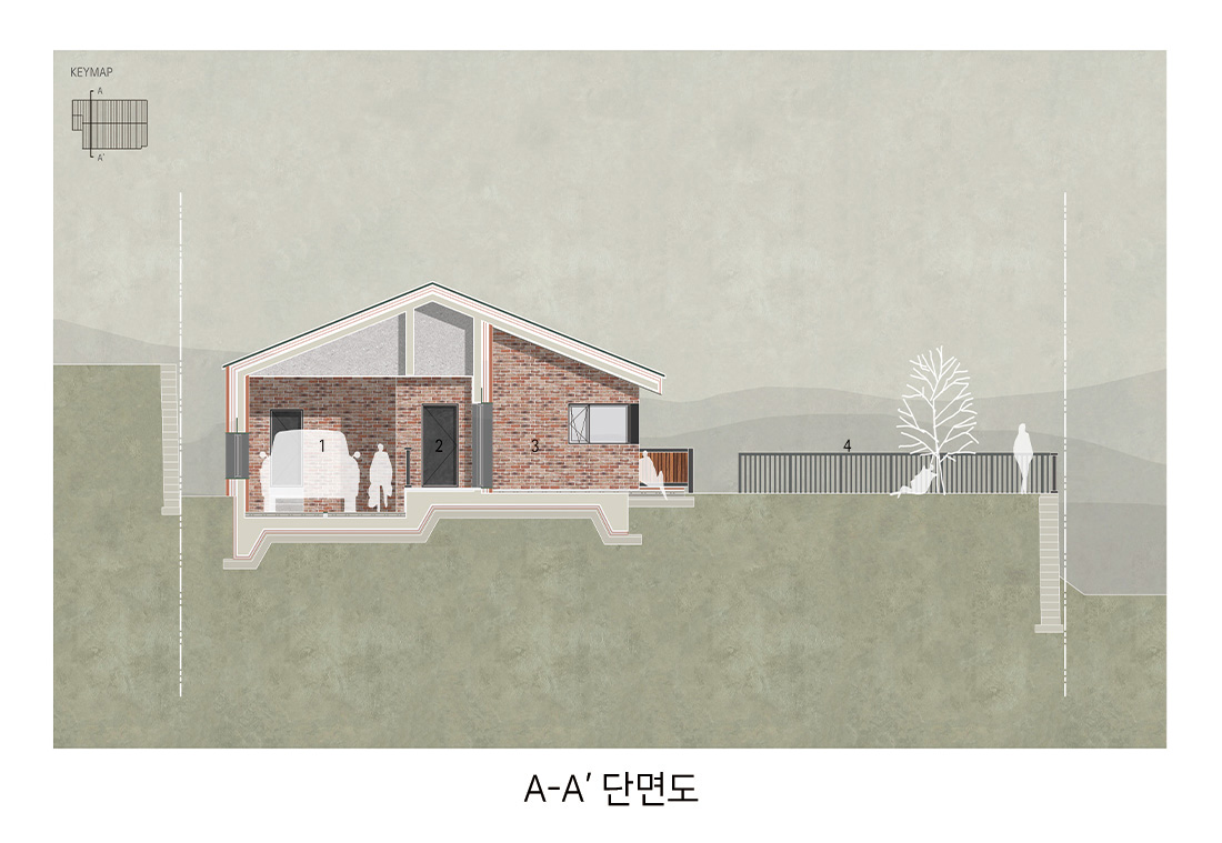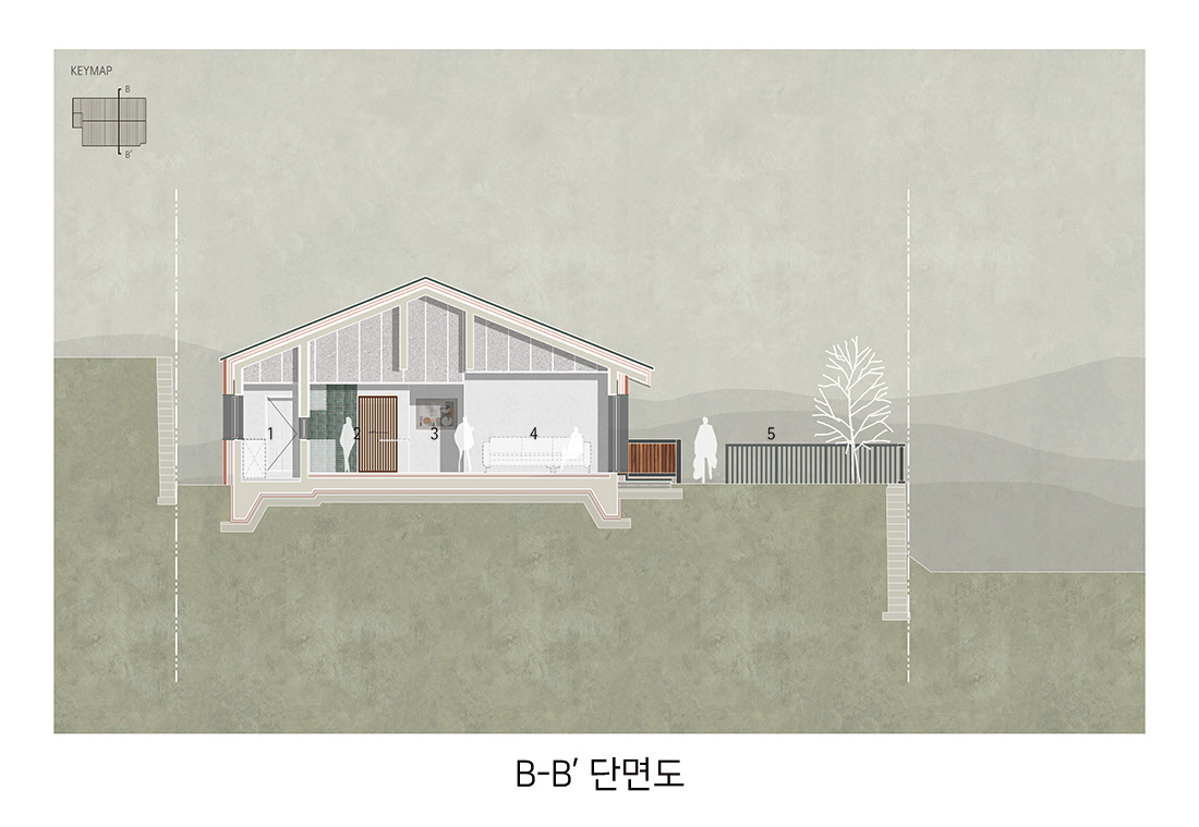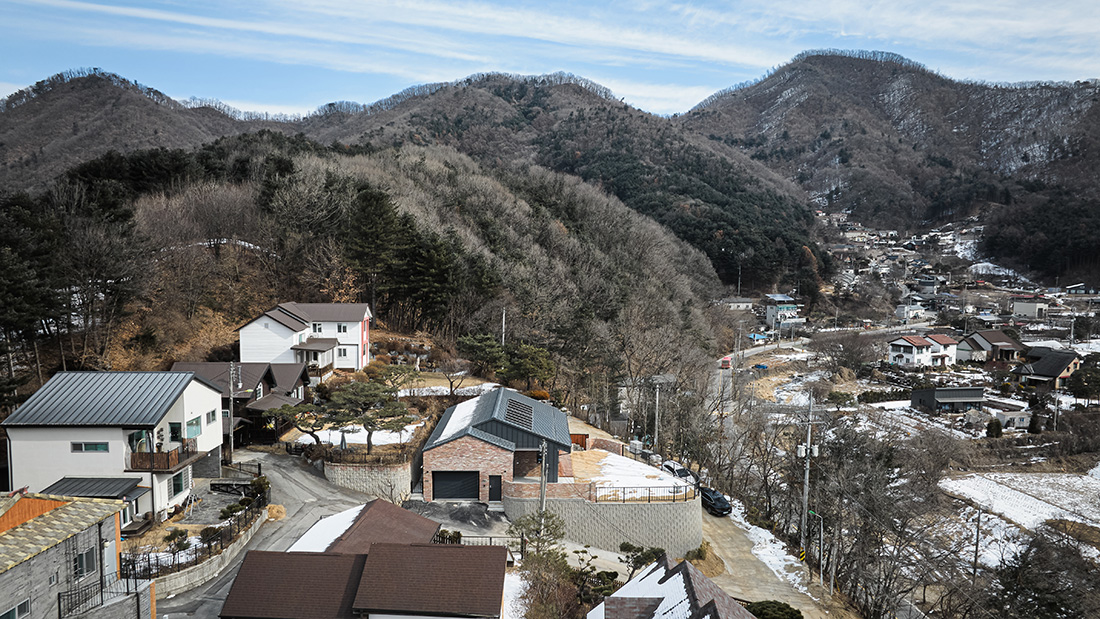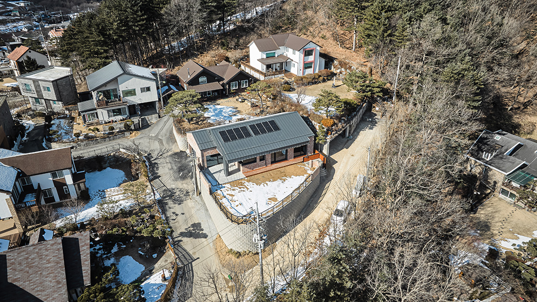 건축주는 도시에서 벗어나 자연과 함께하는 삶을 꿈꾸던 시기, 경기도 양평군 서종면 수능리에 발길을 옮겼다. 북한강 줄기를 따라 이어지는 샛길 끝자락, 산자락에 안긴 대지는 사계절의 변화가 또렷하게 드러나고 마을의 이웃들과 자연스럽게 어우러지는 분위기를 지니고 있었다. 그는 이곳에서 반려견 ‘순이’와 함께 평온한 일상을 보내고 싶어 했다. 활동적인 취미와 삶의 방식이 고스란히 담긴 집, 일상의 쉼표가 되는 공간을 짓기 위해 우리는 설계의 첫 페이지를 함께 시작했다.