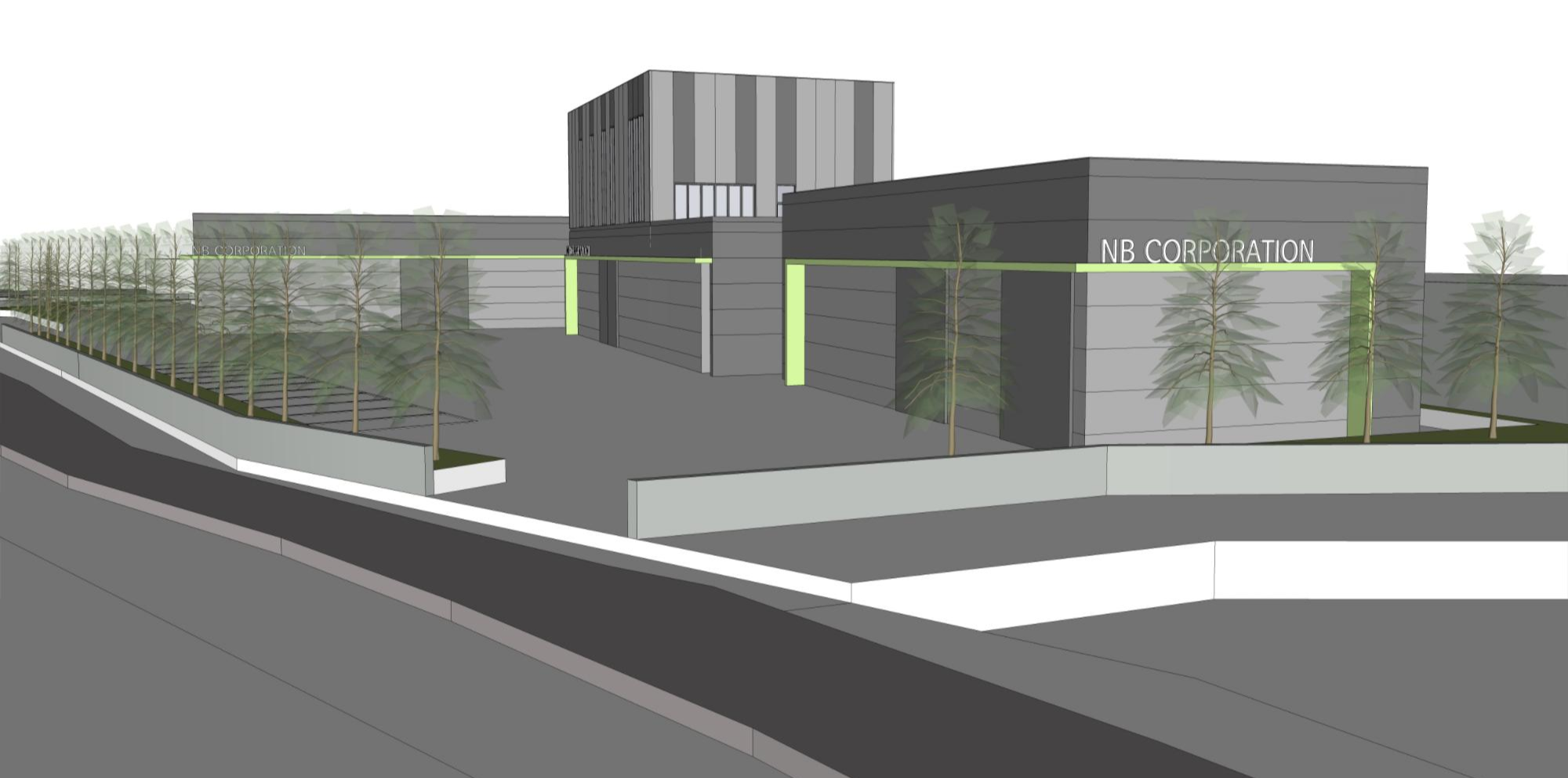 커피 제조 관련 사업 확장으로 기존에 임대로 사용하던 공장을 벗어나 제조공장과 보관창고, 사무실을 통합하여 신축하고자 찾아온 의뢰인은 물류가 차지하는 비중이 높다 보니 낙하IC와 근접하여 커피원두의 물류이동과 출하 시 물류이동이 원활한 위치의 땅으로 대지를 결정했다. 이곳에 정부지원을 통해 공장을 신축하고 싶어 한 의뢰인은 많은 예산을 들여 건물을 짓기는 어려운 상황이었므로 총 3개의 동으로 설립하되, 전체적으로는 모던하고 심플한 이미지로 디자인하였다. 특히 외부 마감 패널의 경우 의뢰인께서 기존 임대공장을 신축할 때의 경험과 단열재의 소중함을 알고 계셔서 일반 샌드위치 패널이 아닌 그라스울 패널을 사용하였다.