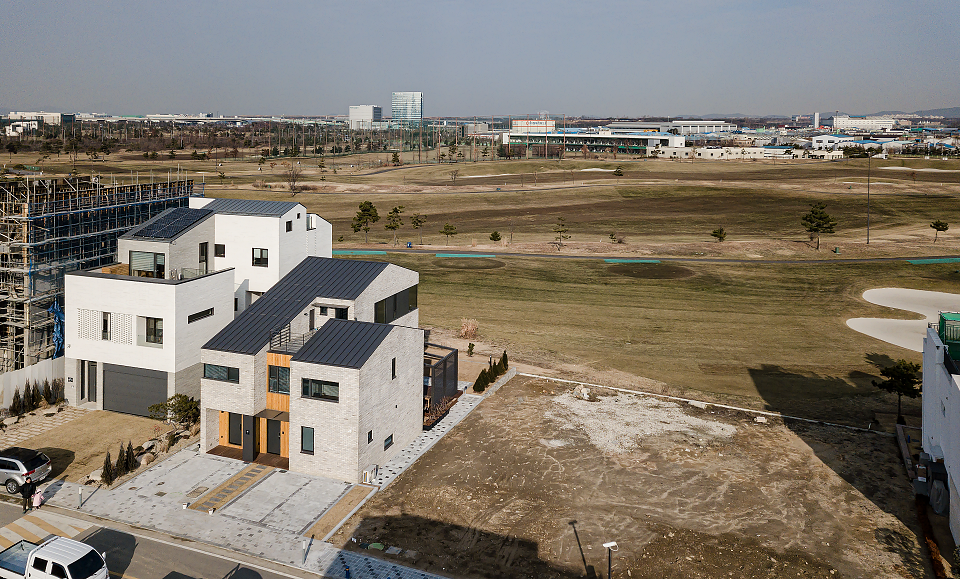 대지는 청라 베어즈베스트 골프장 안에 있는 단독주택용지로써, 기본적으로 단지 내 상, 하수도, 가스까지 인입이 되어 있어 건축할 때 고려해야 할 기반 시설 인입 부분에 대한 걱정이 없는 반면, 경사지붕 구배 및 색상, 조경 등 단지 내 통일성을 줄 수 있도록 단지 내 지구단위계획이 존재하여, 그에 맞는 건축물을 설계해야 하는 곳이다. 단지 내 규정을 만족하고, 건축주의 생각과 예산을 고려한 최적의 디자인을 제안하기 위해 4개월이 넘는 설계기간을 가지며, 건축설계를 진행하였다.