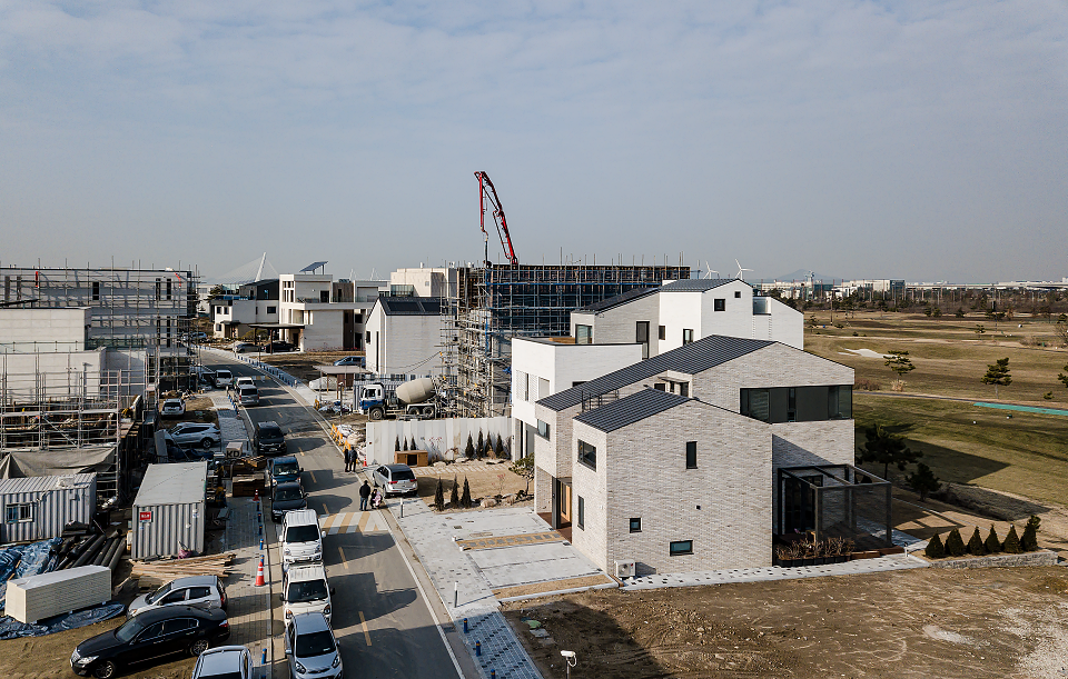 대지는 청라 베어즈베스트 골프장 안에 있는 단독주택용지로써, 기본적으로 단지 내 상, 하수도, 가스까지 인입이 되어 있어 건축할 때 고려해야 할 기반 시설 인입 부분에 대한 걱정이 없는 반면, 경사지붕 구배 및 색상, 조경 등 단지 내 통일성을 줄 수 있도록 단지 내 지구단위계획이 존재하여, 그에 맞는 건축물을 설계해야 하는 곳이다. 단지 내 규정을 만족하고, 건축주의 생각과 예산을 고려한 최적의 디자인을 제안하기 위해 4개월이 넘는 설계기간을 가지며, 건축설계를 진행하였다.