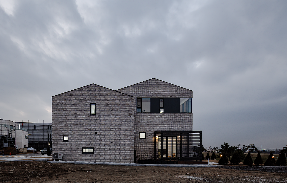 단지 내 지구단위계획 시행지침에 경사지붕은 1:2~1:3(세로:가로)의 완만한 경사로 규제되어 있고 외벽의 색채는 흰색 계열, 지붕의 색채는 진회색 계열로 규정되어 있다. 따라서 경사지붕은 대지의 장축과 같은 방향의 박공지붕으로 계획하여 대지의 방향에 순응하도록 계획하였으며, 외벽은 흰색 계열이면서 견고한 느낌의 백고벽돌 타일을 주 재료로 사용하고, 두 개의 매스를 분절하는 중심에는 메인 재료와 분리되는 다른 재료(목재)를 사용하여 단조롭지 않으면서도 서로 조화를 이룰 수 있도록 계획하였다.
