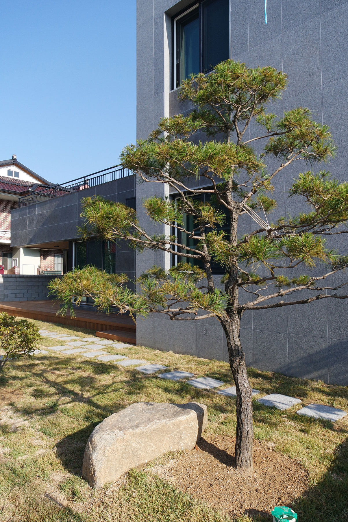 석재는 고급스럽고 종류가 다양해서 건축물 외장 마감으로 많이 사용되고 있고 내구성이 강하여 다른 마감 재료보다 변함없고 오래가는 장점이 있습니다. 산남동 단독주택 PROJECT는 쿠답파 블랙 / 고흥석 / 노벨 그레이 세 가지의 석재를 조화롭게 사용하여 마감하였으며 입면에 다양한 패턴을 주어 단조로움에서 벗어날 수 있게 계획하였습니다.