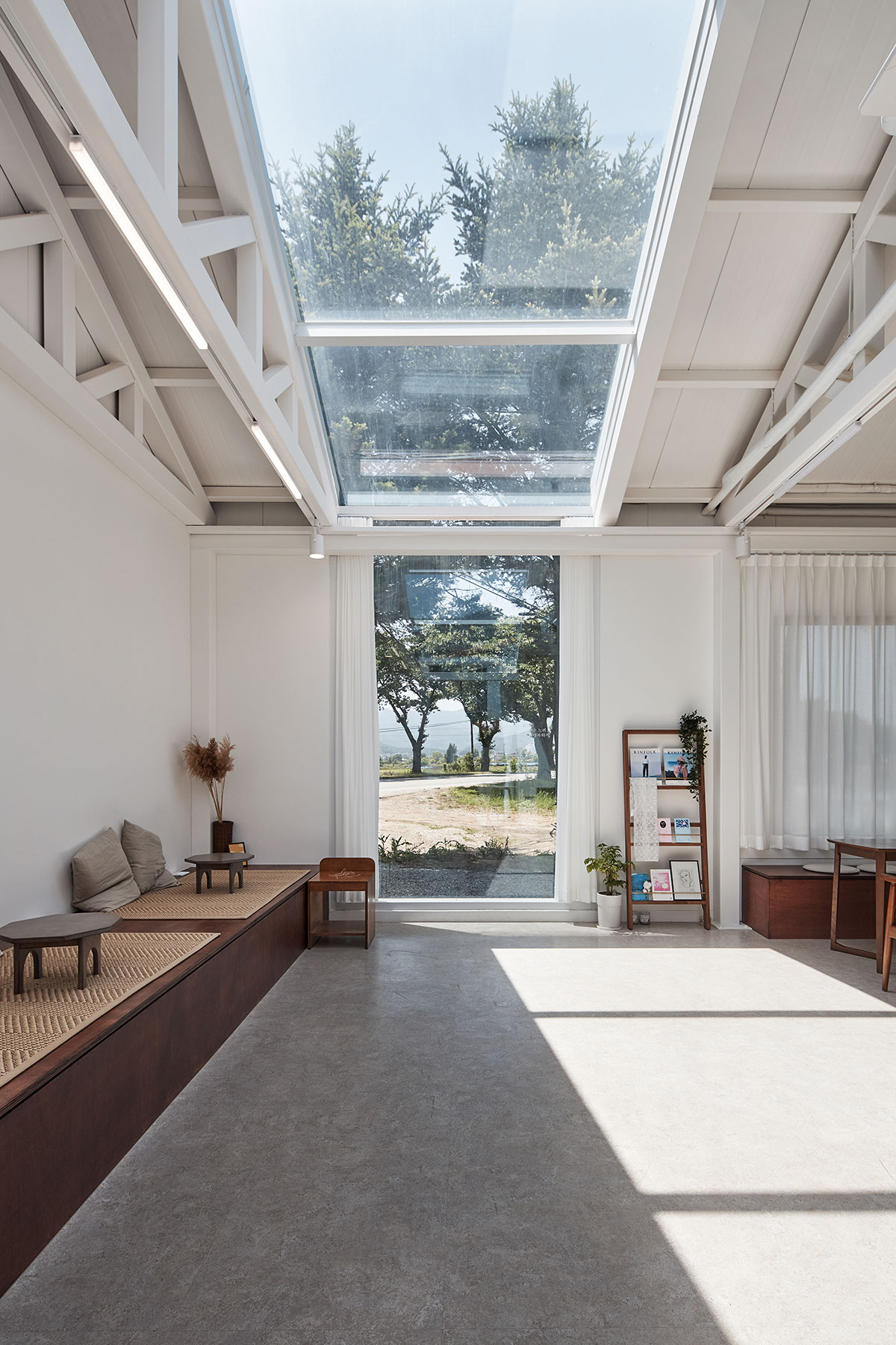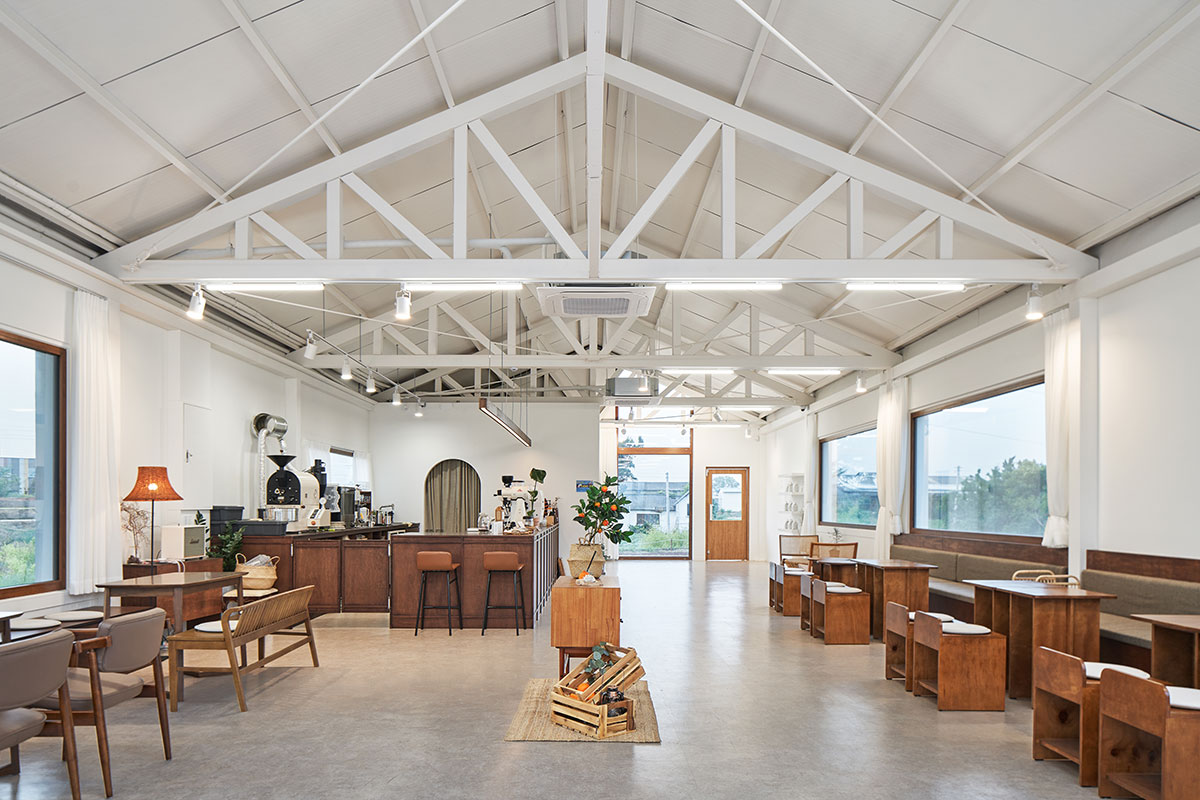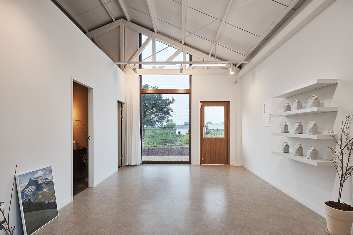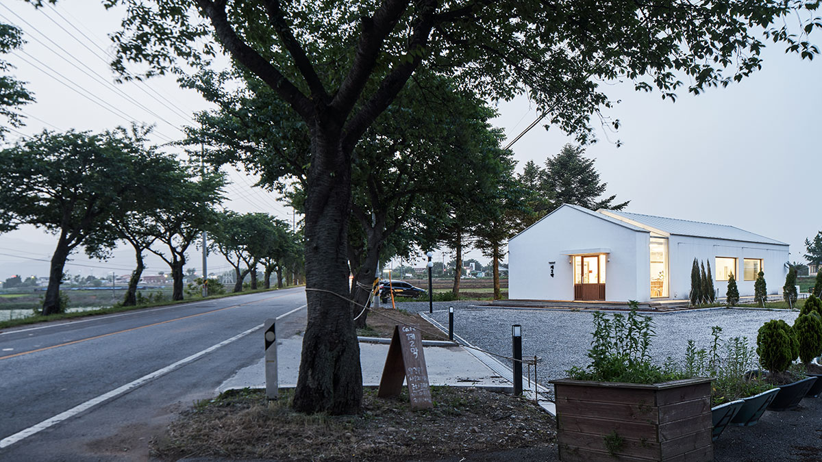예산 국도변에 접한 평행사변형의 대지는 봄의 벚꽃이 매우 아름답고 주변의 농업용 경관이 아름다운 땅이었다. 다만 국도에 접한 대지의 길이가 좁아 건축물의 인지성을 높이기 위해 통창을 계획하여 야간에 조명이 주는 시선 이동을 유도, 밝은 화이트 색상을 통해 주변 풍경과 대비될 수 있도록 했다. 또한 작은 내부공간을 보완하기 위해 마당과 주변 경관을 활용한 야외공간을 설치하였다.
