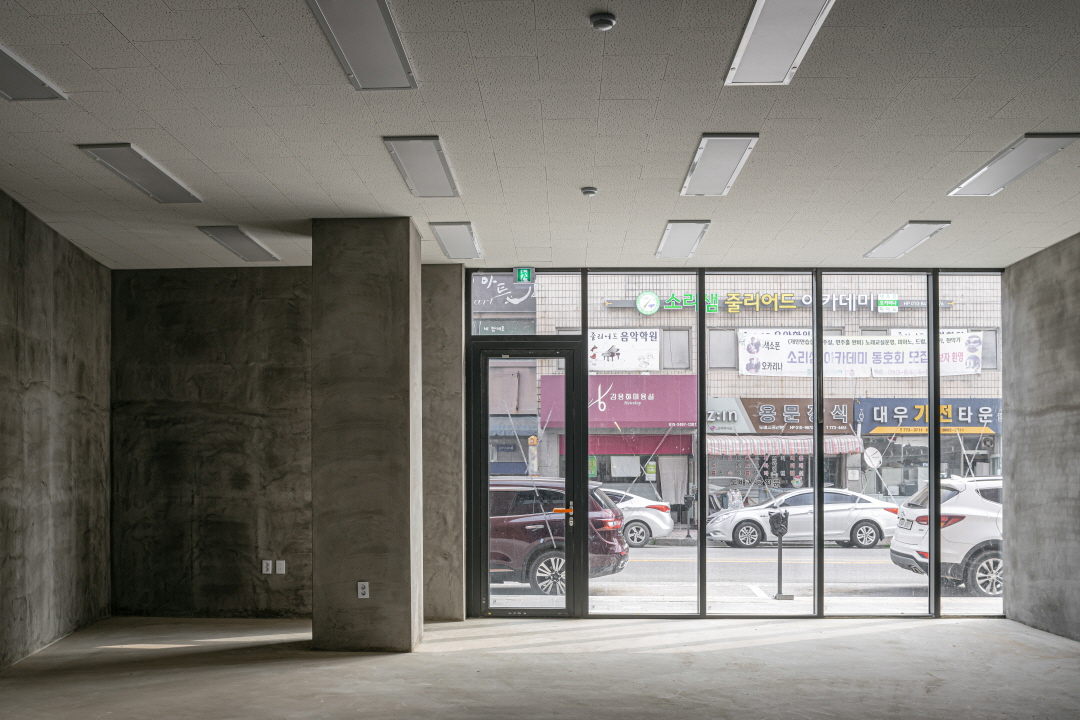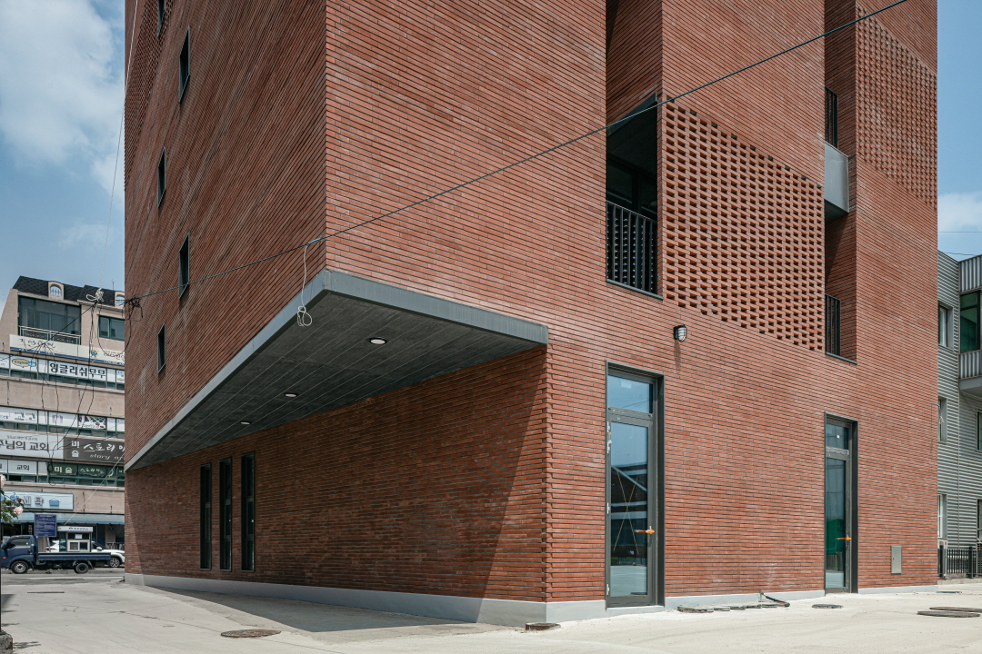 각 층별로 벽돌을 돌려쌓아 일조에 따른 건물의 입체감을 주었으며, 공간쌓기 한 벽돌 벽체 사이로 햇빛과 조명이 다양하게 연출되도록 입면을 디자인하였다. 특히 각 층별 다양한 형태의 테라스는 상가공간에 외부와의 접점을 만들었고, 임대상가에서 부족할 수 있는 개방감은 테라스로 보완하여 단조로울 수 있는 공간에 변화를 줬다.