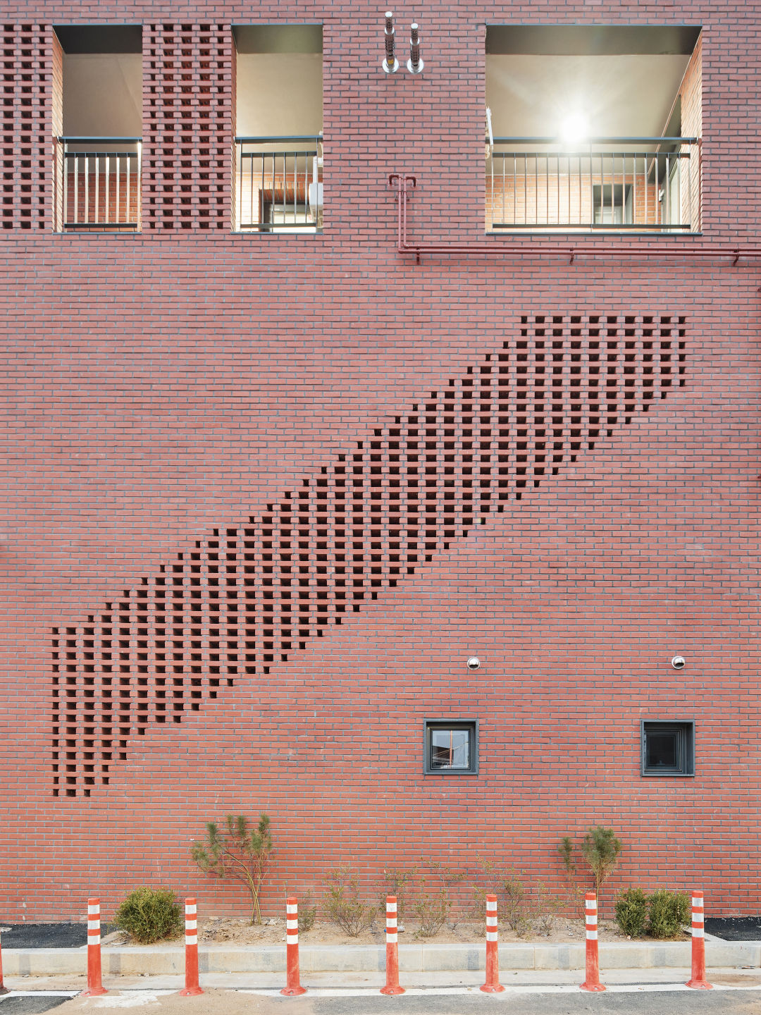 주거공간에 외부공간을 연결할 수 있는 테라스와 중정을 두어 개방감을 느낄 수 있도록 하면서 불특정다수에 시선을 차단할 수 있는 벽(반개구쌓기)을 두어 씨쓰루의 외부공간을 만들게 되었다.