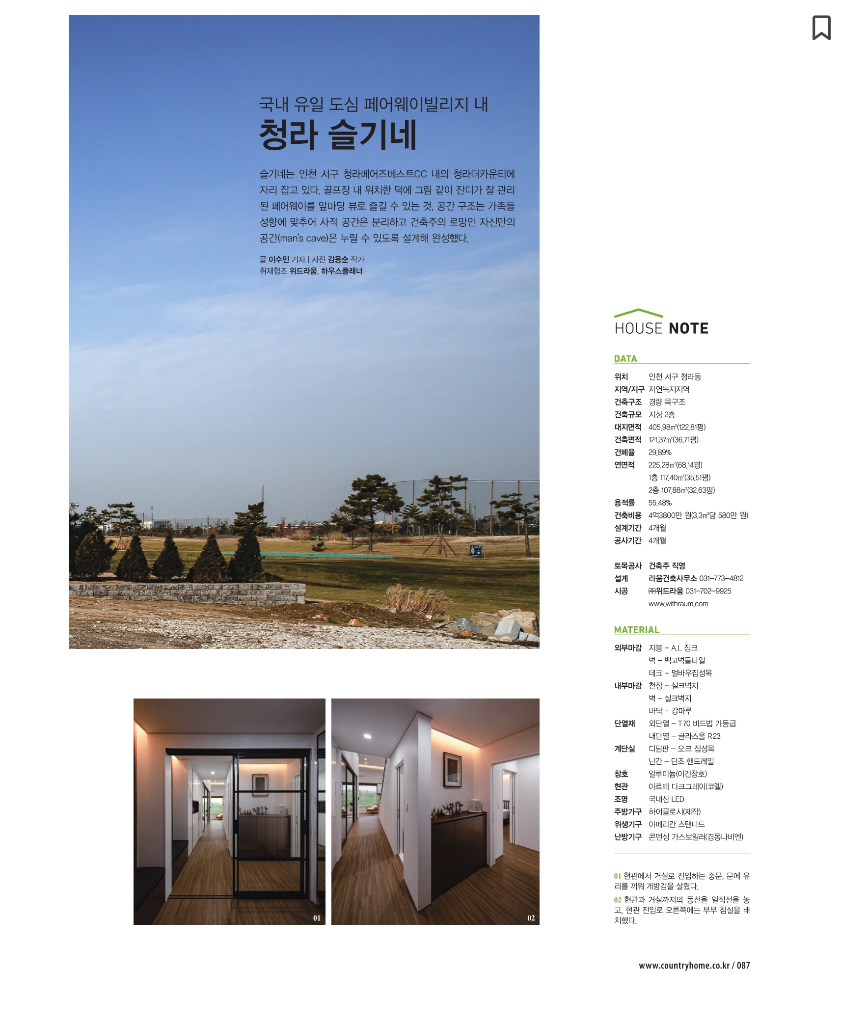 1년동안 공들였던 프로젝트인 '청라 슬기네'가 전원주택 라이프(3월호)에 소개되었습니다.