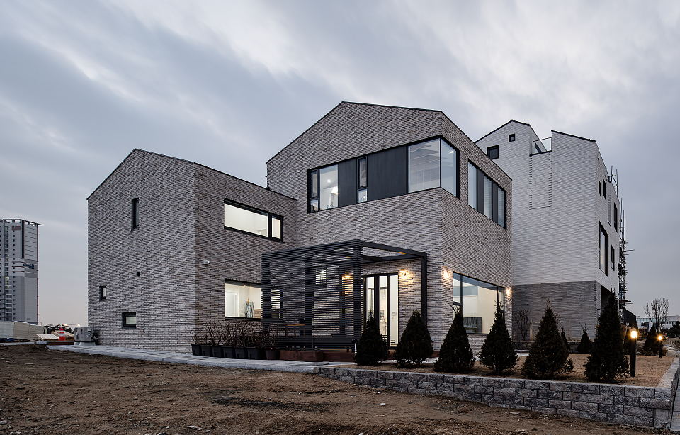 사생활은 보호하면서 단독주택의 삶을 누리길 원한 건축주를 위해 사적 공간은 분리하고 가족만을 위한 공간인 툇마루 및 안마당과 취미실이 있는 집입니다. 대지 내 경사를 활용한 스킵플로어 형태와 더불어 높은 층고의 거실과 채광을 위한 전면의 큰 창은 집의 공간감을 극대화해줍니다.
