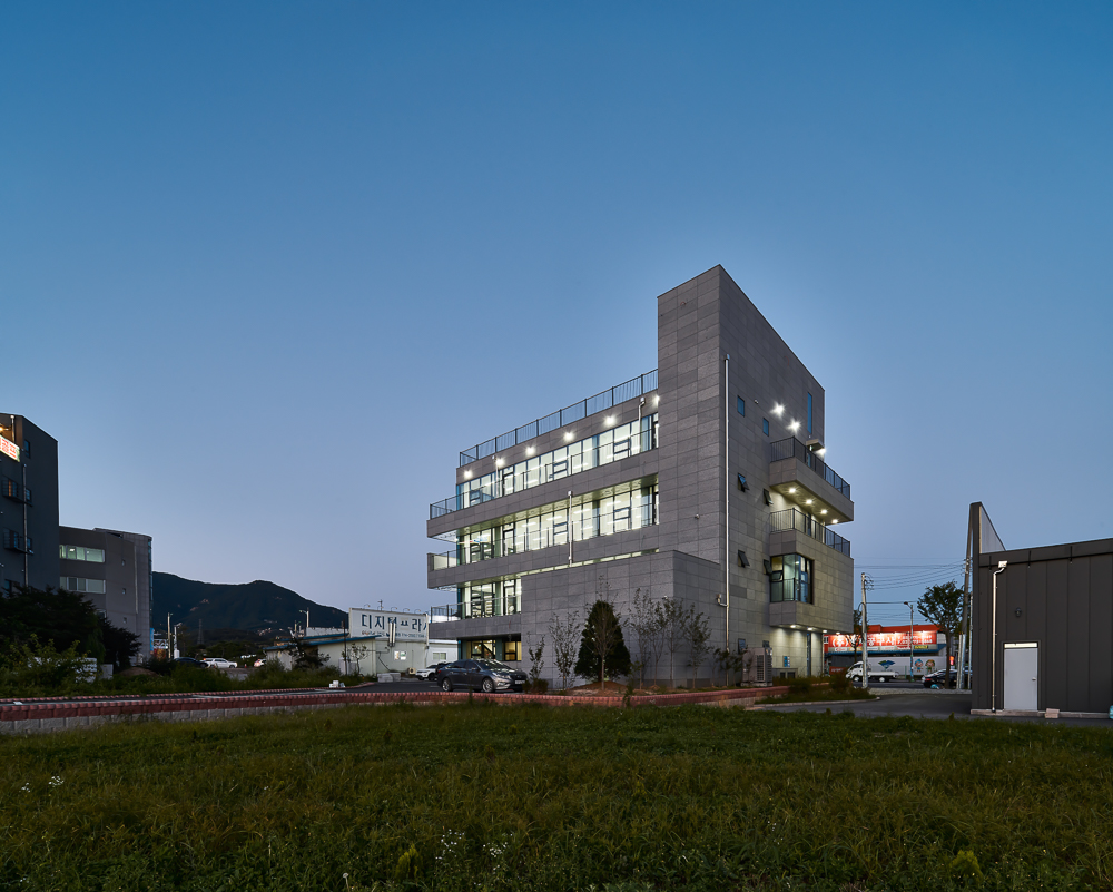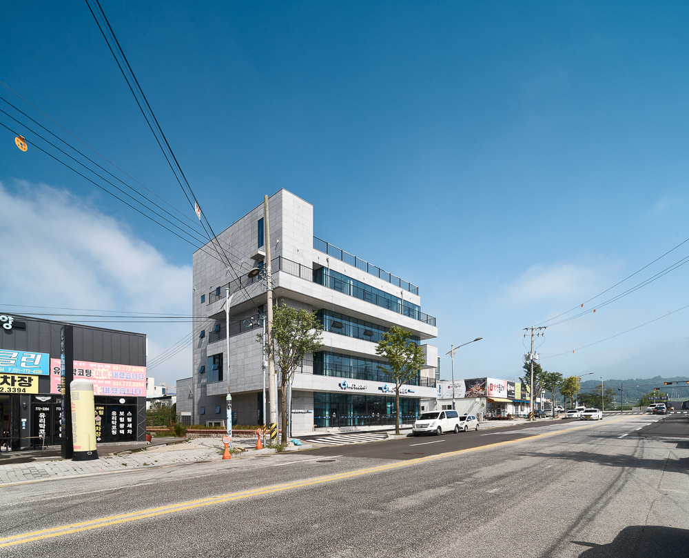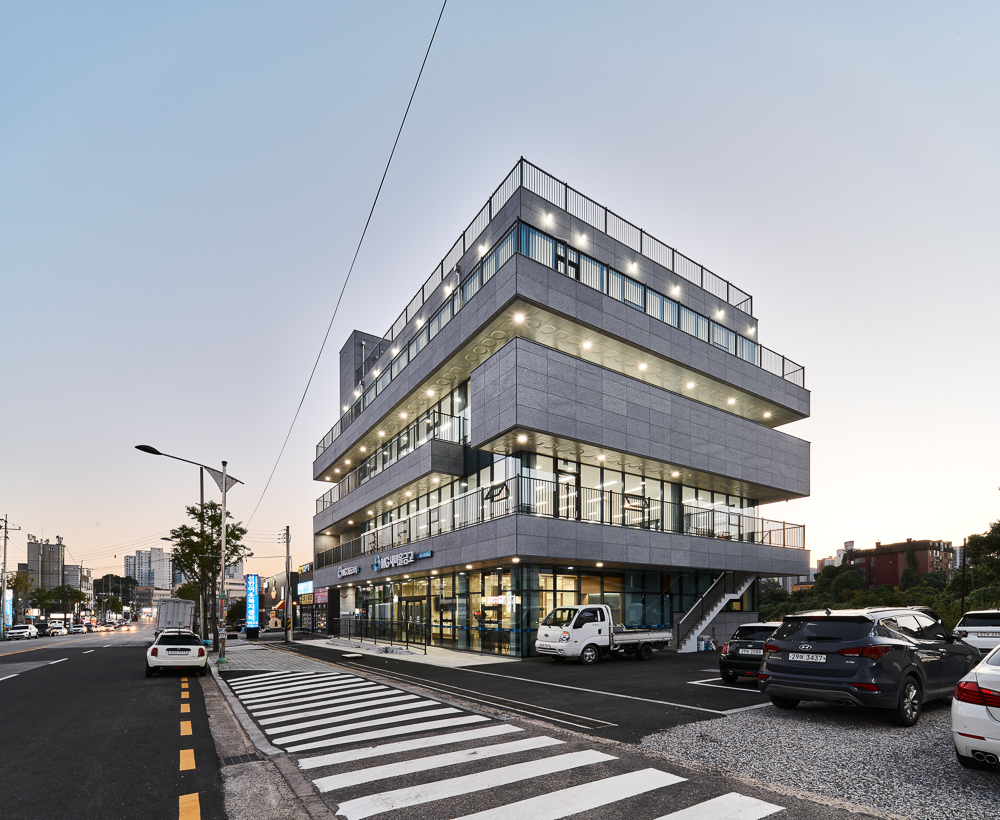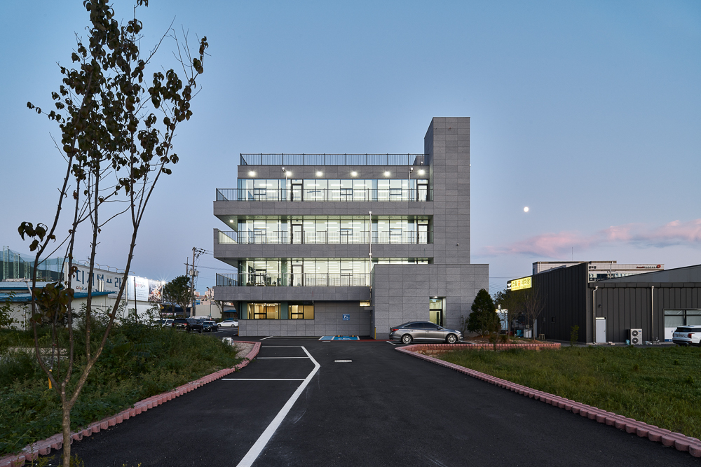 전면부에는 대로변에서 차량과 보행자의 접근이 용이하도록 남동향으로 길게 배치하고, 차량의 진입도로가 대지와 제일 가깝게 하여 주차장을 건물 뒤편에 배치했다. 또한 근린생활시설 용도로 사용할 건물이기에 테라스 쪽에 2층 상가로 바로 진입할 수 있는 동선을 만들어 업무시설과 상가 동선을 분리하였다.
