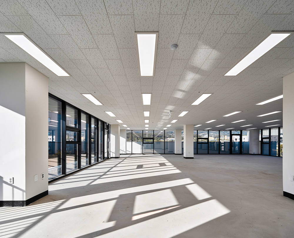 각 공간으로의 진입은 건물의 각 층별로 진입이 가능한 진입부와, 은행으로 바로 진입 가능한 출입문, 2층 테라스로 진출입이 가능한 외부계단까지 총 세 군데가 있다. 각 층은 하나의 프로그램만 사용하기 때문에 벽으로 구획되지 않고, 넓은 공간으로 계획했다. 층별 프로그램이 근린생활시설이라 외부인의 출입이 잦기 때문에 방문자들도 테라스를 이용할 수 있도록 커튼월의 여러 군데에 출입문을 두었다. 출입구의 수가 늘어난 만큼 건물의 특징인 테라스 공간을 누구나 자유롭게 사용할 수 있도록 하였다.