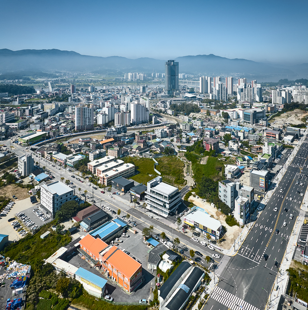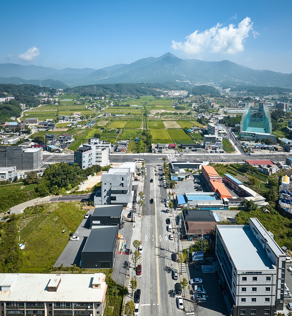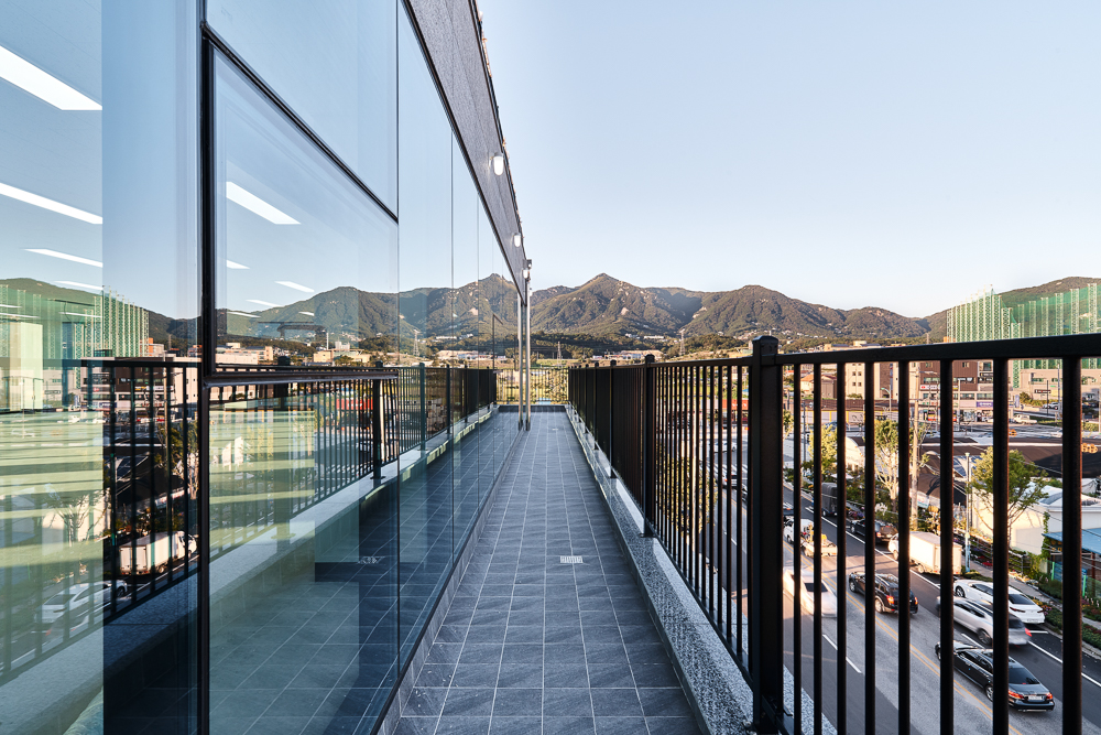 대지는 대로변에 위치해 접근이 용이하며, 주변 건물들이 1~2층으로 낮게 형성되어 있어 조망 확보에 유리한 조건을 갖추고 있다. 또한 높이 올라갈수록 용문산 조망이 가능하다. 이러한 대지조건을 모두 고려했을 때, 높은 층에서 외부를 조망할 수 있도록 계획하는 것이 무엇보다 중요했다.