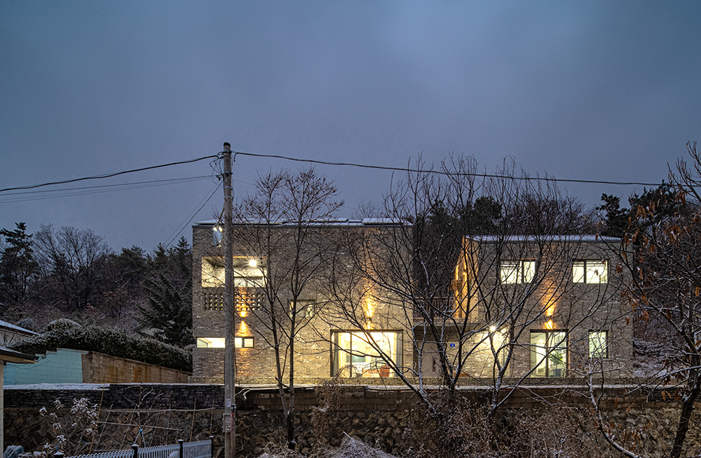아파트에서 거주하던 4인 가족과 현재 필지의 낡은 주택에서 거주하고 계셨던 아내의 부모님은 주말마다 모여 함께 생활하고 있었다. 그러나 오래된 주택이다 보니 불편함이 많던 상황. 이에 장인, 장모, 부부, 그리고 부부 슬하의 두 자녀 모두가 함께 살 수 있는 캥거루 주택을 짓기로 결심하고 우리를 찾아왔다. 가족은 크게는 4인 가족과 부모님 세대의 프라이버시를 보호하는 한편 따로 또 같이 사용할 수 있는 공용공간 구성을 요청하였는데, 무엇보다 두 자녀의 통학에 대한 불편함을 감수할 수 있도록 단독주택의 장점을 충분히 활용하길 원했다.