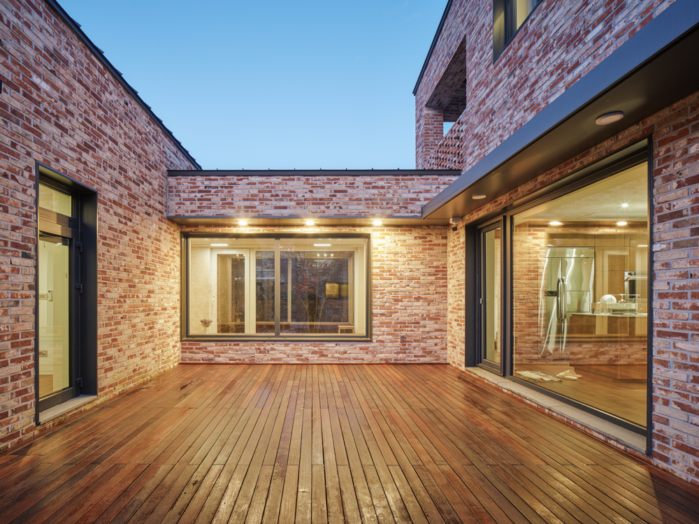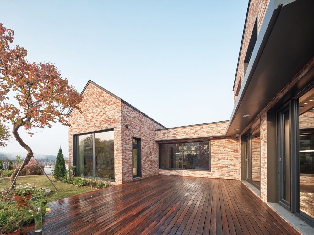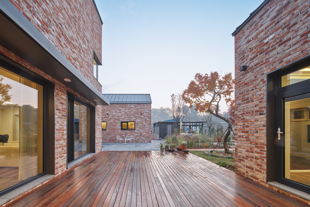 주택과 사무실 사이에 만든 외부 공간 중 하나인 데크는 지인들과의 파티 공간으로 활용할 수 있다. 근경으로 마당, 중경으로 정원, 원경으로는 풍경을 나누어 조망하게끔 계획했다.