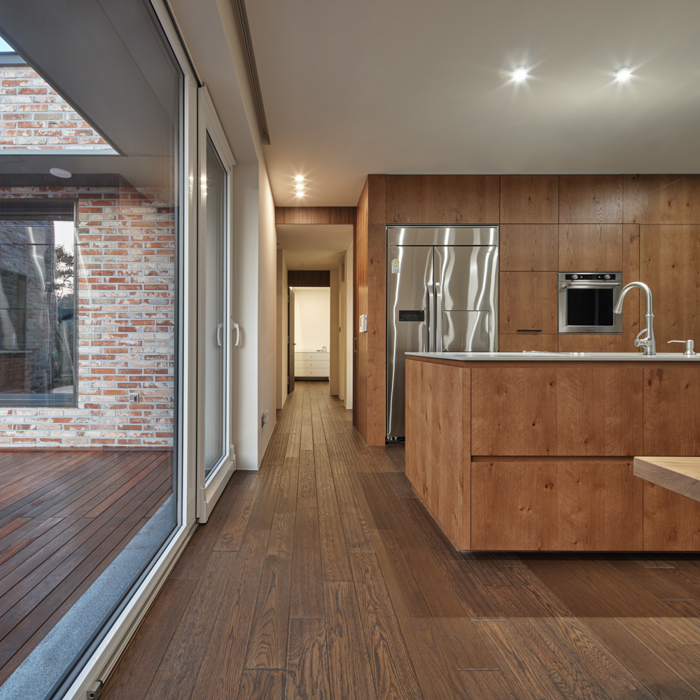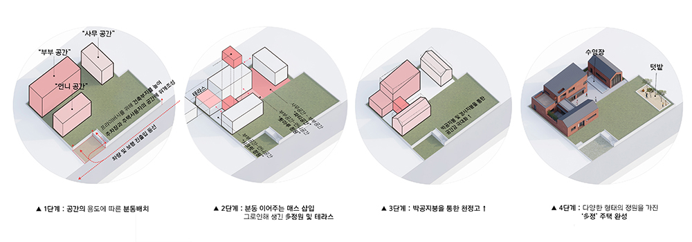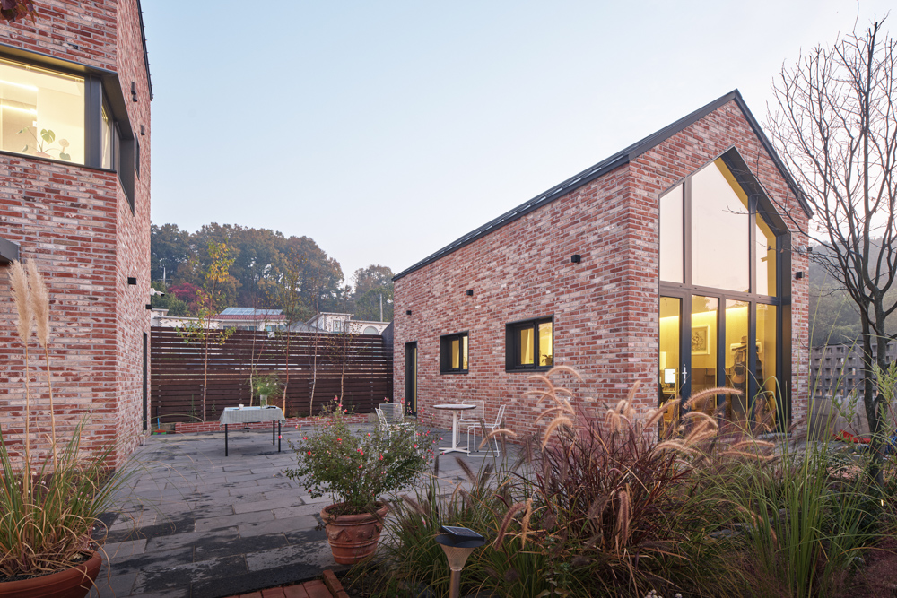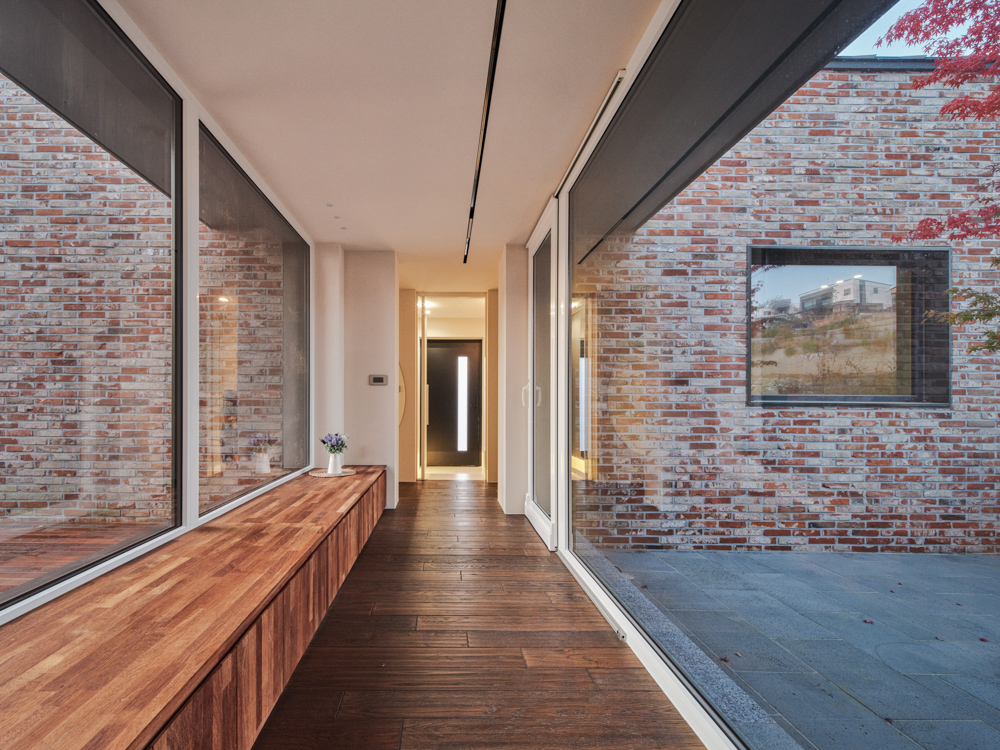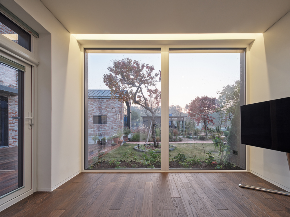 두 번째는 H형태를 통한 공간 분리로 생겨난 개인 정원. 언니공간과 부부공간을 내부에서 연결하는 통로로 분리된 공간을 언니만의 포켓 공간으로 사용할 수 있다. 언니공간에서는 정원과 연결 통로 양쪽을 개방하여 개방감과 프라이버시를 모두 느낄 수 있게 해 공간의 상호작용이 가능하도록 계획했다. 활발하고 동적인 분위기의 메인 정원과 달리 개인 정원은 차분하면서 정적인 공간이다. 서로 다른 분위기의 정원을 통해 하나의 대지 위에서 다양한 공간감을 경험하게 된다.