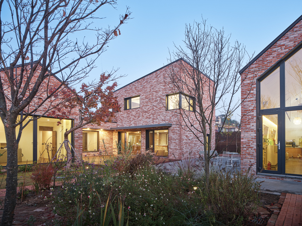 조경에 대한 건축주의 호기심과 열정이 드러나는 ‘다정’은 정원과 건축을 조화롭게 구성한 집이다. 이를 반영하여 ‘많을 다(多)’에 ‘뜰 정(庭)’을 사용해 이름을 지었다. 주택은 정원이 건물을 둘러싸는 형태다. 넓은 정원을 앞에 배치한 후 3개의 공간(부부공간, 언니공간, 사무공간)을 정원과 조합하는 안을 만들었고, 한 동의 주택에서 서로의 프라이버시를 지키며 부부와 언니의 공간을 분리하는 최적의 방법으로 H형태를 제안했다. 부부와 언니의 공간이 수직‧수평으로 효율적으로 분리되는 배치다. 사무동과 주거동의 연계로 형성된 사이 공간마다 서로 다른 테마의 정원을 조성할 수 있도록 여백을 남겼다.