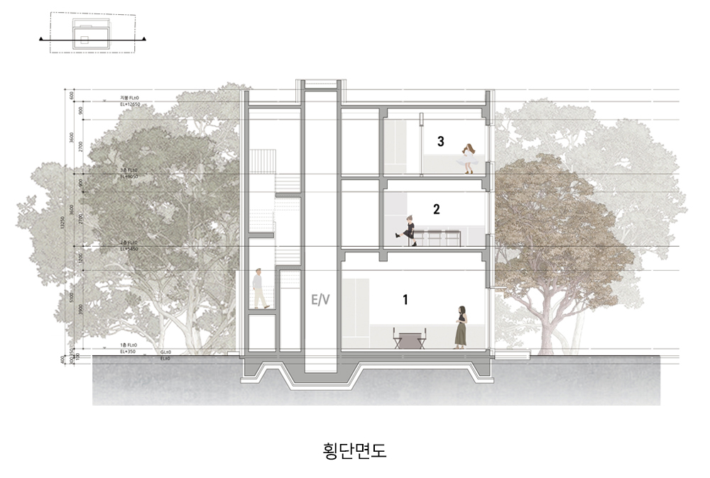 2층과 3층은 프라이빗한 공간으로, 2층에선 마스터룸과 가족실을 배치해 가족 간의 대화와 함께 다양한 이벤트가 이루어지도록 계획했다.