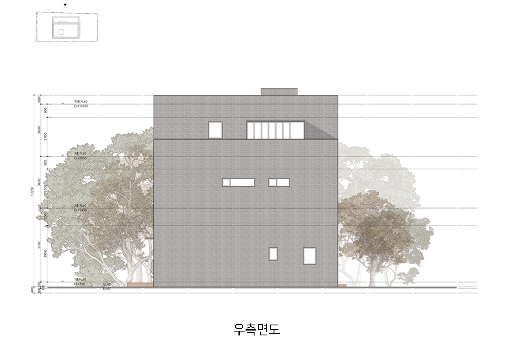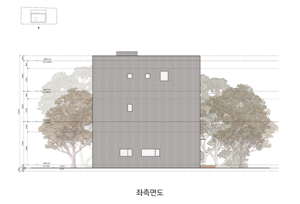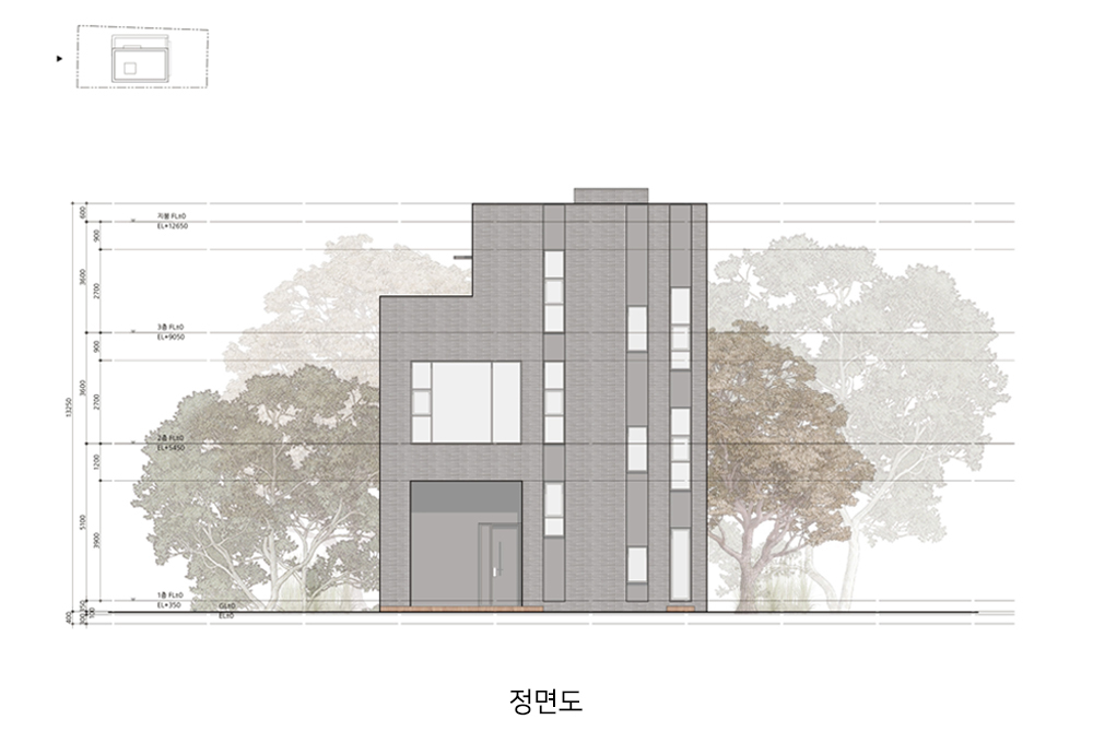 공장을 지어본 경험이 있던 건축주는 설계의 중요성을 실감했다. 좋은 주택을 설계해줄 건축사를 찾던 중, 청라 베어즈베스트GC 구역의 <슬기네> 프로젝트를 보고 라움건축사사무소를 방문했다. 오랜 시간 이야기를 나눈 다음 주택 설계를 진행하게 됐다. 현재 거주하는 아파트에선 두 자녀의 활동에 제한이 있고 층간 소음을 걱정해야 했다. 가족들은 주변 이웃이나 환경에 구애받지 않는 마당이 있는 집에서 함께 생활하고 싶어했다. 대신 교육 환경을 비롯한 기존 생활권을 크게 벗어나지 않는 위치에 새 집을 마련할 필요가 있었다. 우리는 이러한 조건을 주택 설계에 반영하고자 했다.