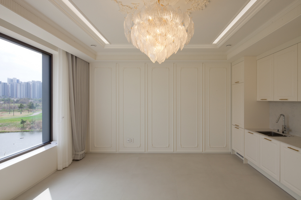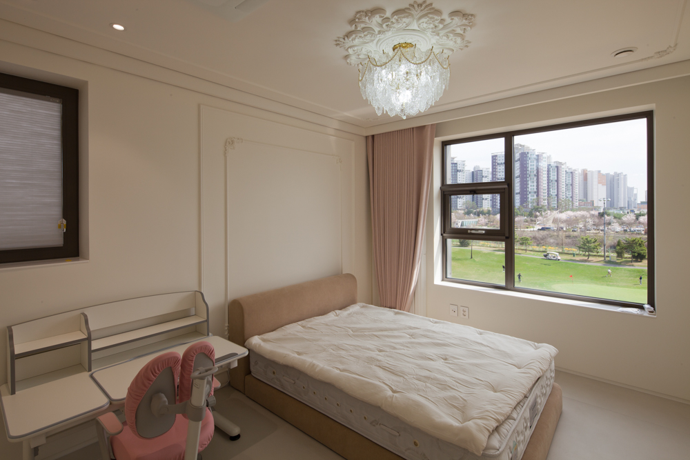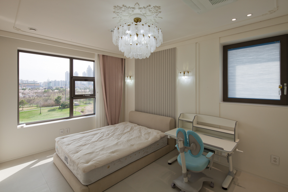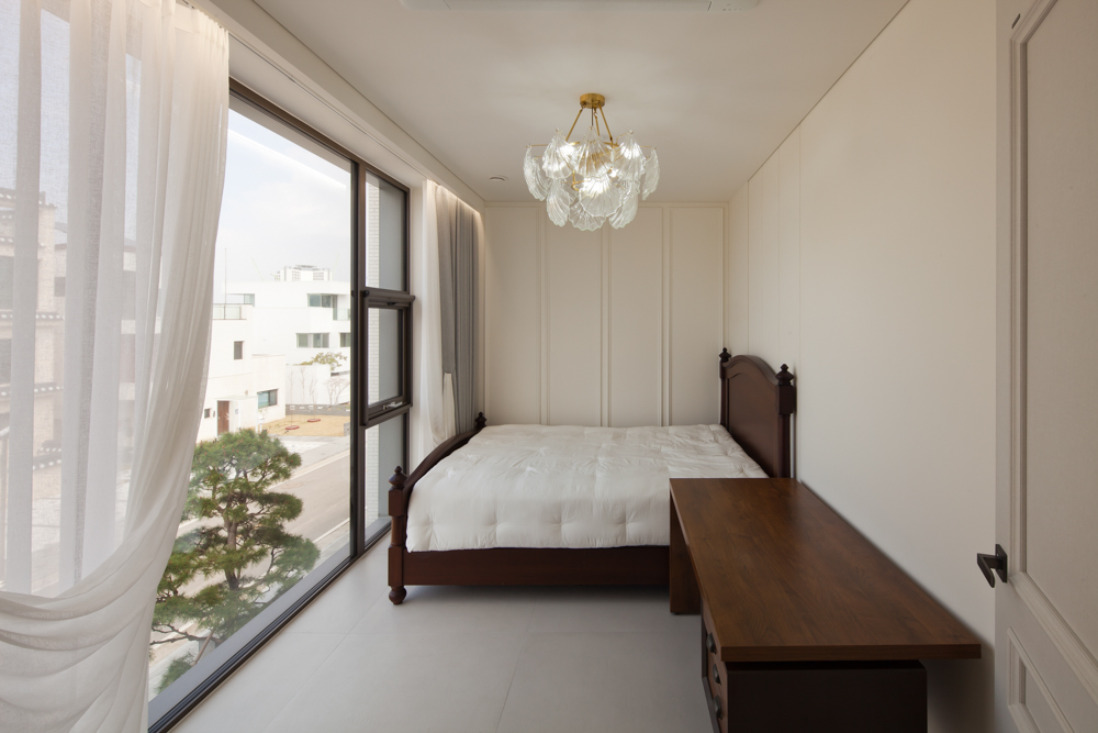 3층은 자녀 방을 배치했는데, 아이의 성장에 따라 공간을 확장하고 자유롭게 재구성할 수 있도록 비내력벽을 사용해 가변적인 공간으로 완성했다. 건축주의 바람대로 몰딩과 화려한 천장 조명이 통일감 있는 실내 공간 분위기를 만든다.