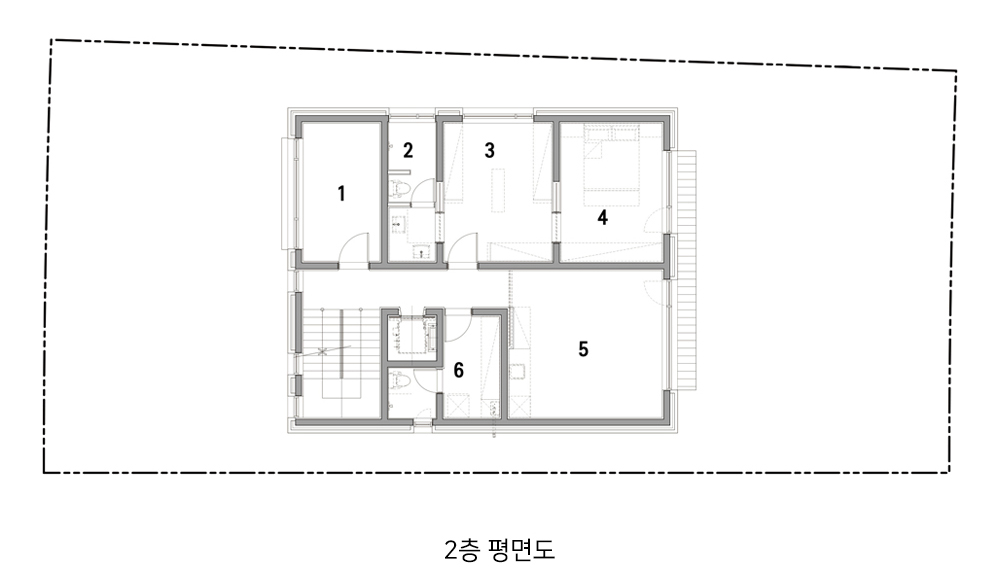 ① 서재 ② 안방 욕실 ③ 드레스룸 ④ 안방 ⑤ 가족실 ⑥ 욕실, 화장실