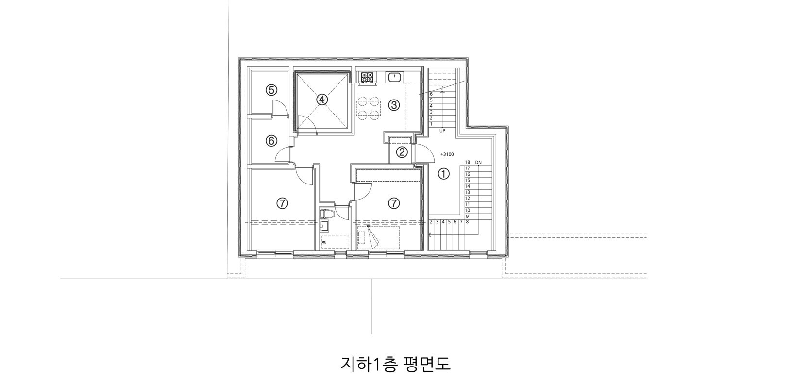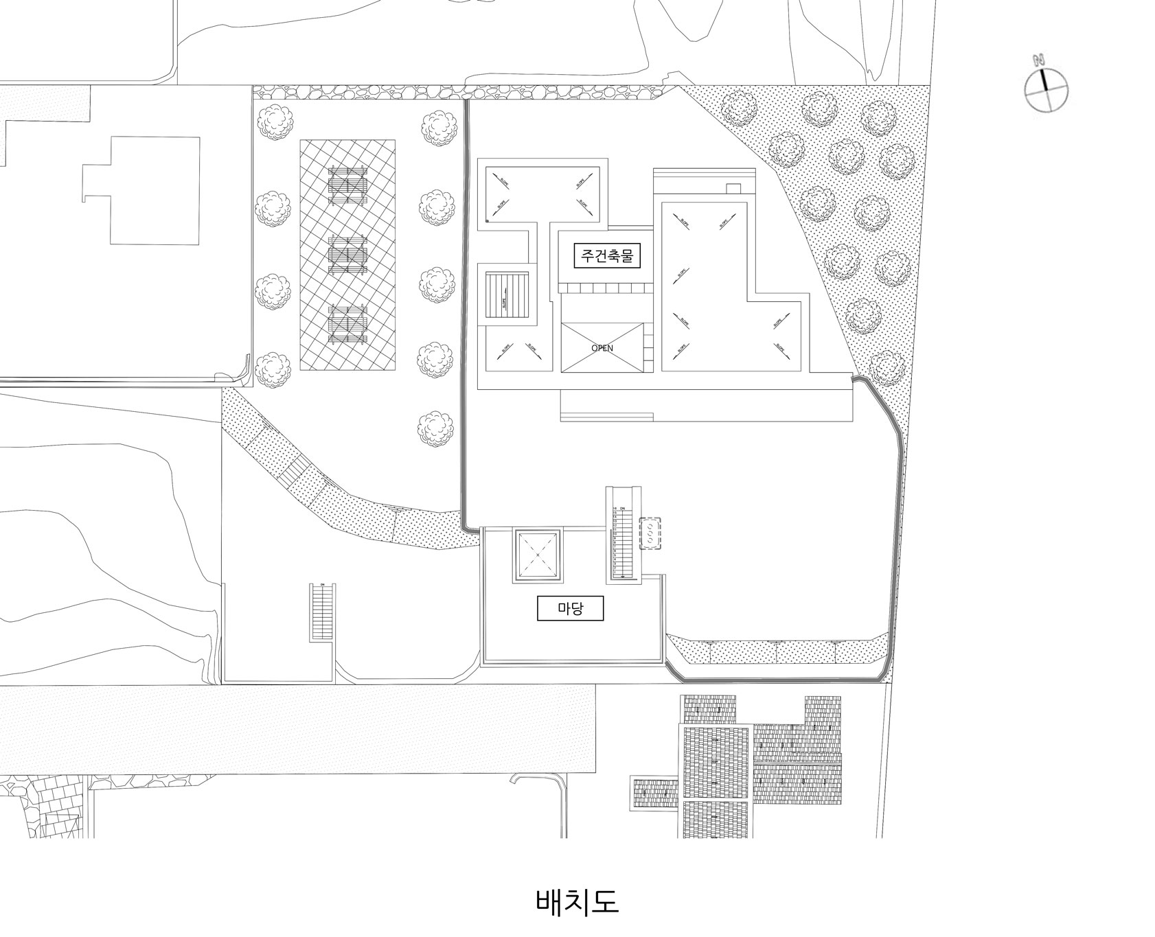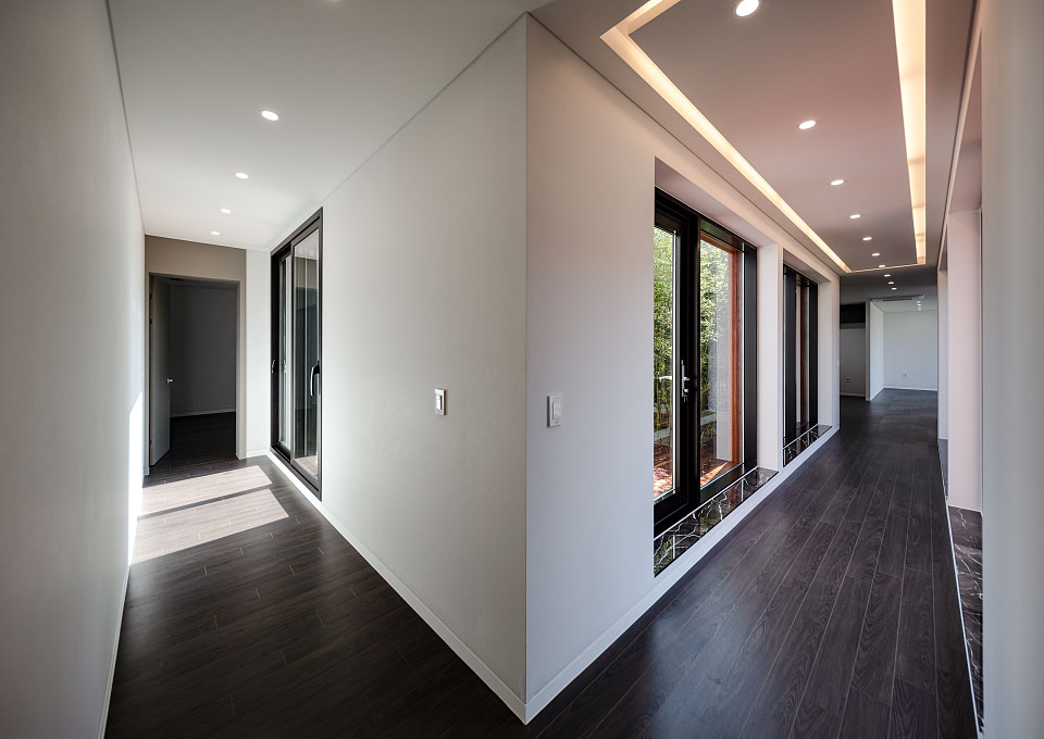 주택 진입로를 따라 진입하면 내부 중정이 복도의 창호를 통해 차경으로 비치도록 하여 방문객의 흥미를 유도하고 복도 이용자는 정원과 중정을 내부에서 감상할 수 있도록 복도공간을 계획하였다.